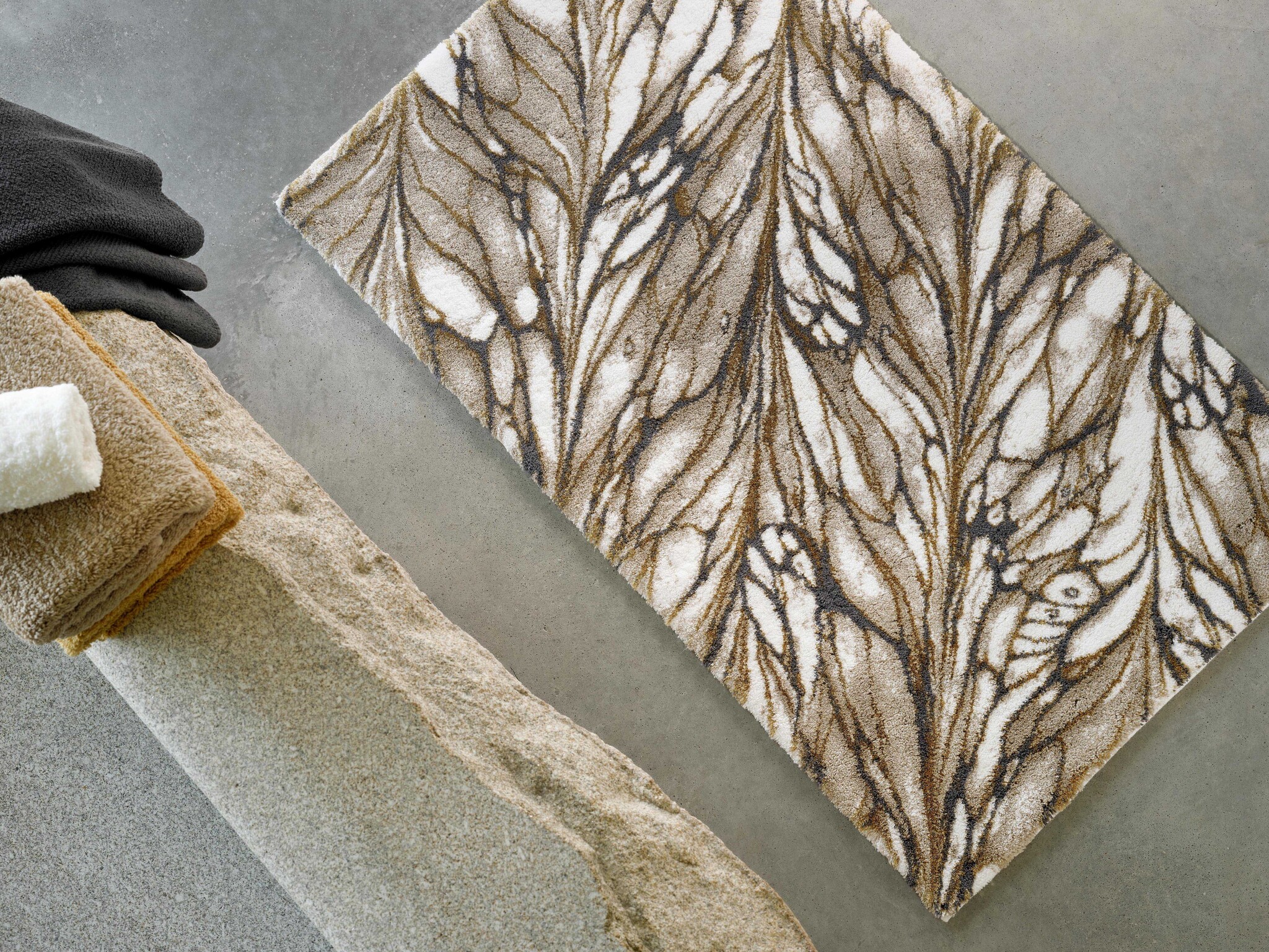 De Diana badmat van Abyss & Habidecor is een poëtische ode aan de delicate schoonheid van de natuur. Dit badtapijt heeft mooie natuurlijke tinten in ecru, zand, donkergrijs en een vleugje blinkend goud, dat de complexe patronen van een vlindervleugel tot in het kleinste detail vastlegt. Zowel verfijnd als organisch, is de Diane een eerbetoon aan de stille elegantie van de natuur, dat luxe toevoegt aan uw badkamer.