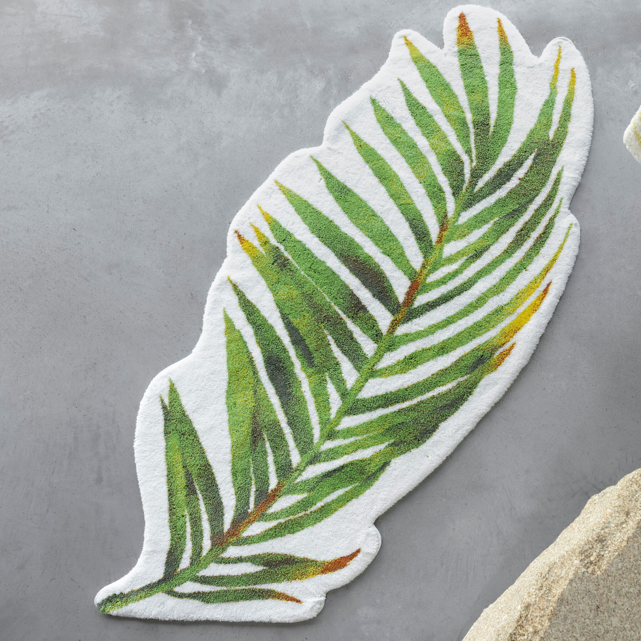 De Palm badmat van Abyss & Habidecor transformeert uw badkamer in een tropische oase. Het levendige groene bladontwerp brengt met de rijke tinten een verfrissende touch toe aan de ruimte. De heerlijke zachtheid en het gewicht van 1900 gram per m², ogen luxe en maken het een aangenaam zachte badmat.
