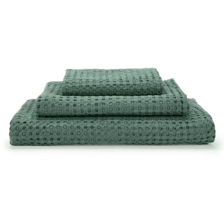 De Abyss Pousada evergreen wafel handdoeken zijn heerlijk licht; ze hebben een gewicht van slechts 300 gram per m². Deze handdoeken zijn perfect voor degenen die een moderne spa-achtige handdoek willen en op zoek zijn naar dunnere handdoeken die heel goed vocht op kunnen nemen; want deze badlijn is superieur in absorptie en duurzaamheid.