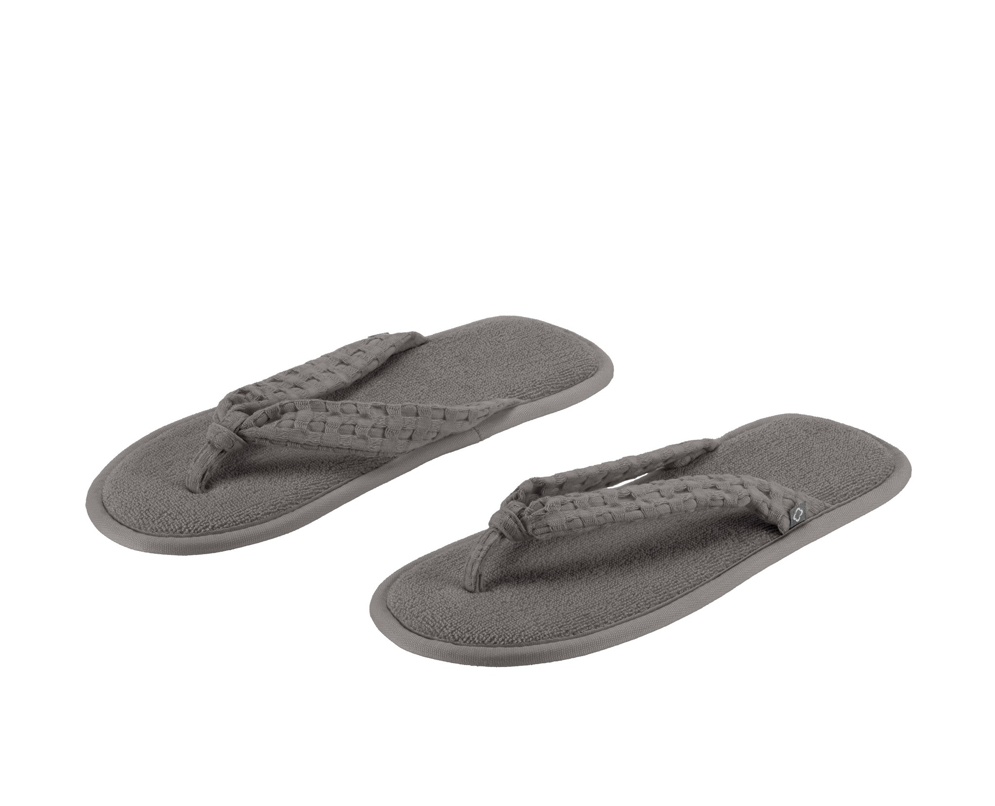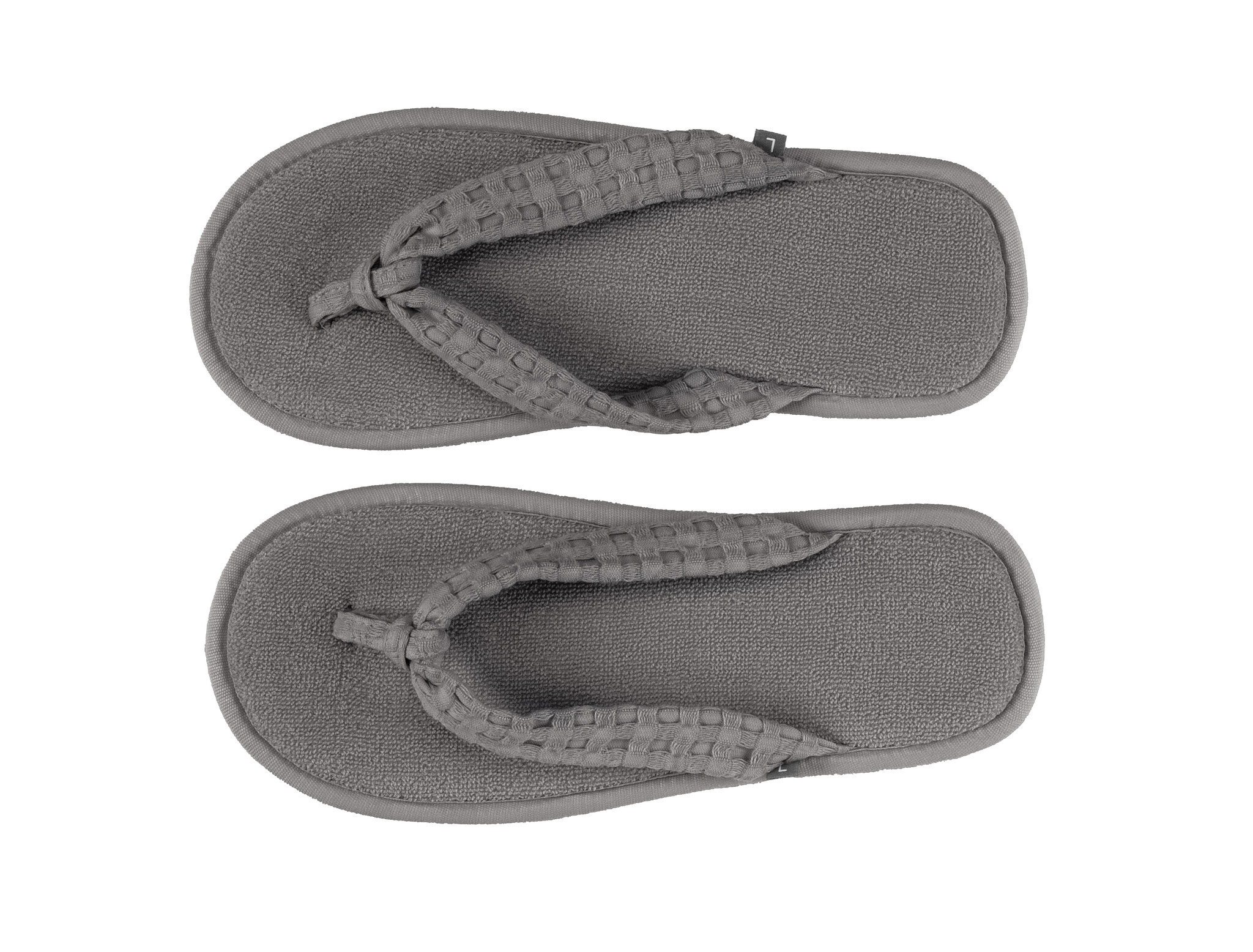 De Pousada slippers in het gris van Abyss zijn luxueus licht met een gewicht van 300 gram per m² en hebben een unieke textuur met een fijn wafelpatroon. En uiteraard passen deze slippers perfect bij het Pousada badgoed.