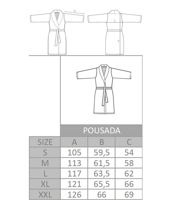De Pousada wafel badjassen in het ice van Abyss zijn luxueus licht met een gewicht van 300 gram per m² en hebben een unieke textuur met een fijn wafelpatroon. Deze badjassen zijn ook ideaal bij warm weer. En uiteraard passen deze badjassen perfect bij het Pousada badgoed.