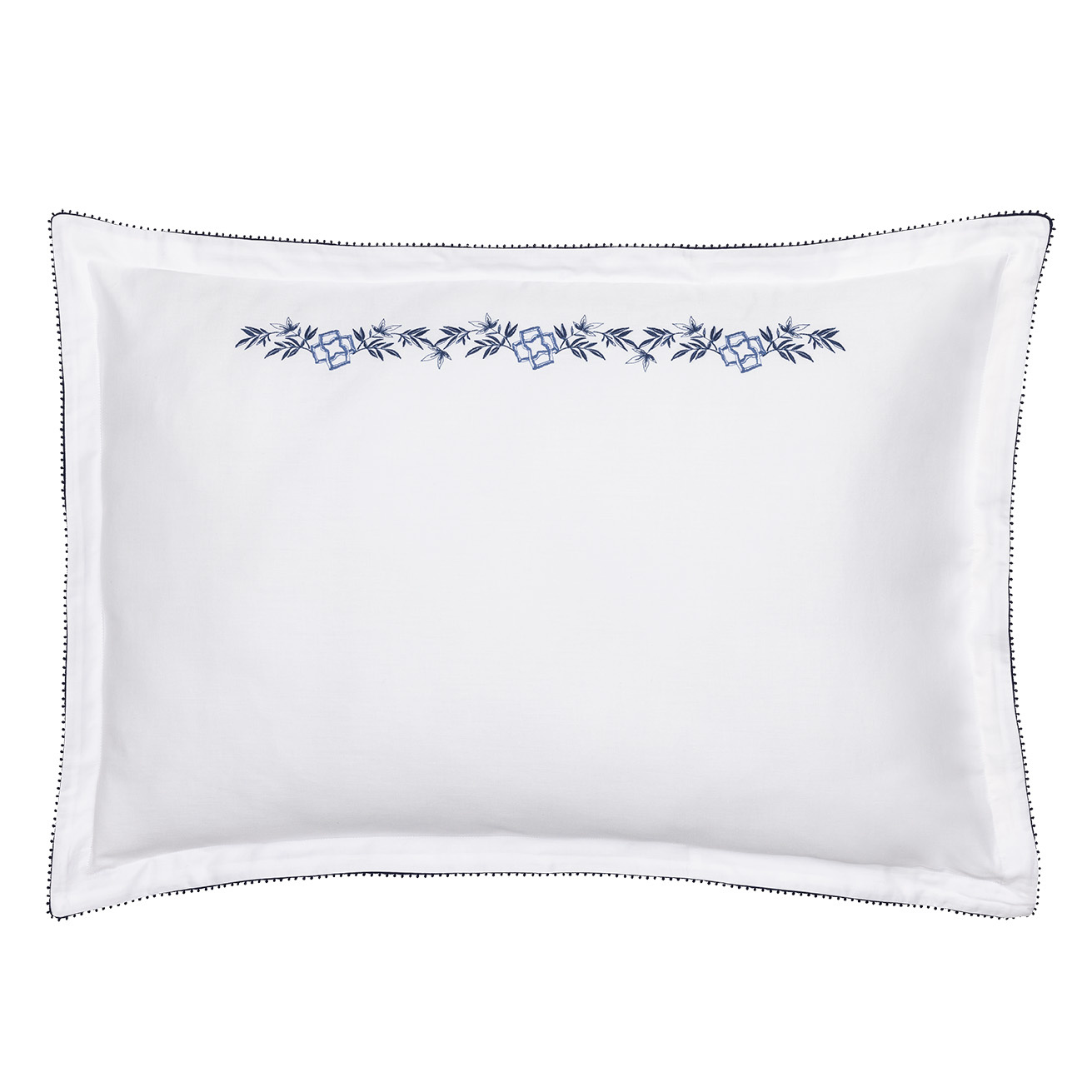Kenmerken: ✔ Materiaal: 100% biologisch katoen satijn (300TC) met GOTS-label; ✔ Kleur: wit met blauw borduurgaren; ✔ Delicaat borduurwerk over de gehele breedte; ✔ Dubbele borduurceintuur geïnspireerd op Frans vlechtwerk; ✔ Sluiting met flessenhals; ✔ Zijdezacht, ademend en duurzaam; ✔ Verkrijgbaar in diverse maten; ✔ Wasbaar op 60°C; geschikt voor de droger op lage temperatuur (kreukherstellend en behoedzaam).
