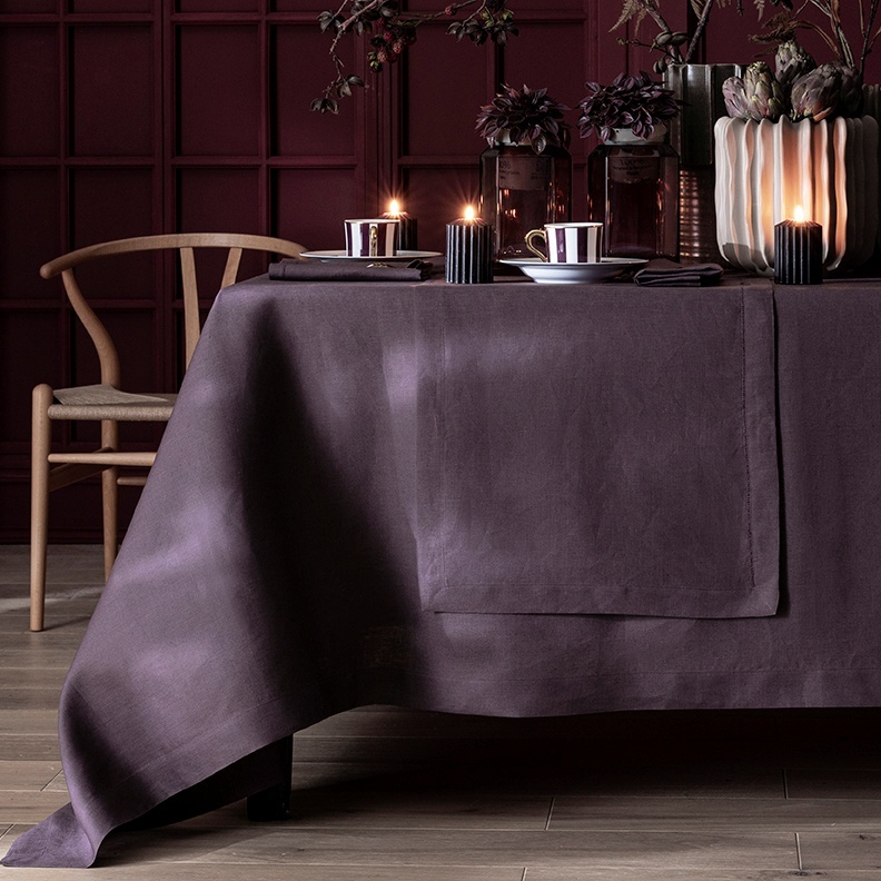 Het Florence tafellinnen is geweven in een 100% langstapelig linnen en leverbaar in maar liefst 12 garengeverfde kleuren, waaronder ook de kleur zwart. Deze tafellakens hebben een vlekwerende finish.