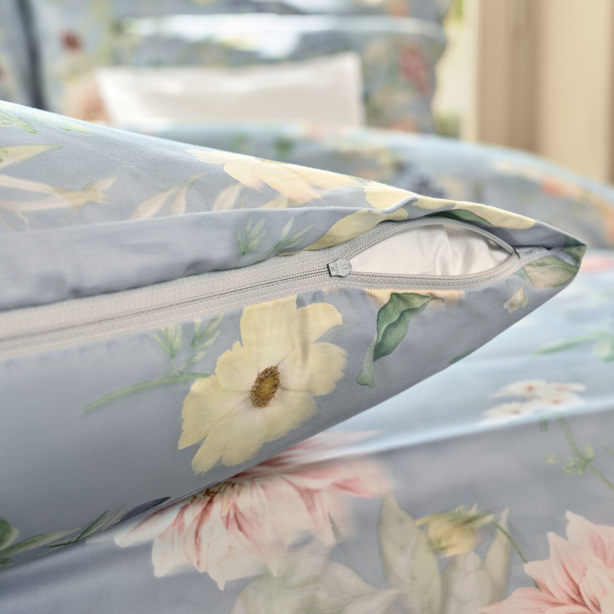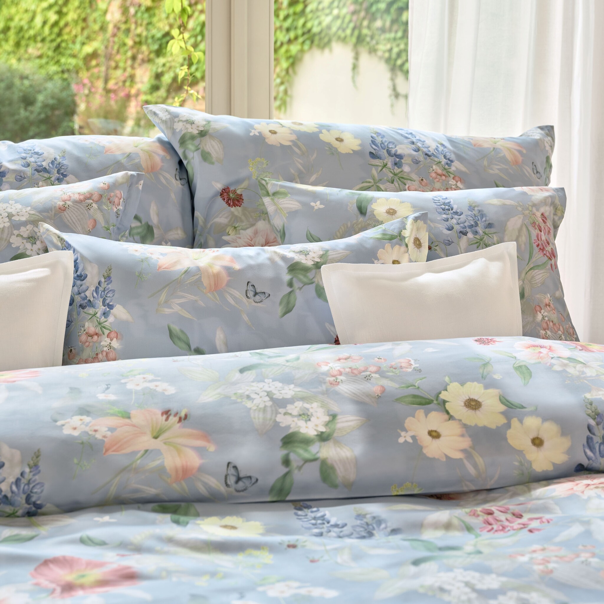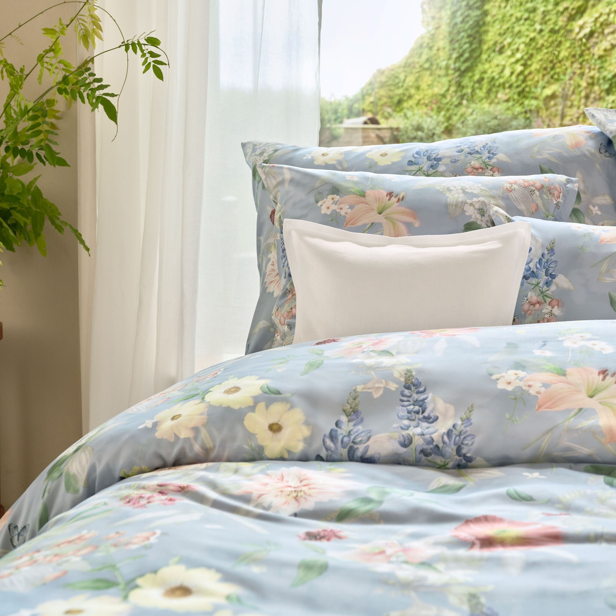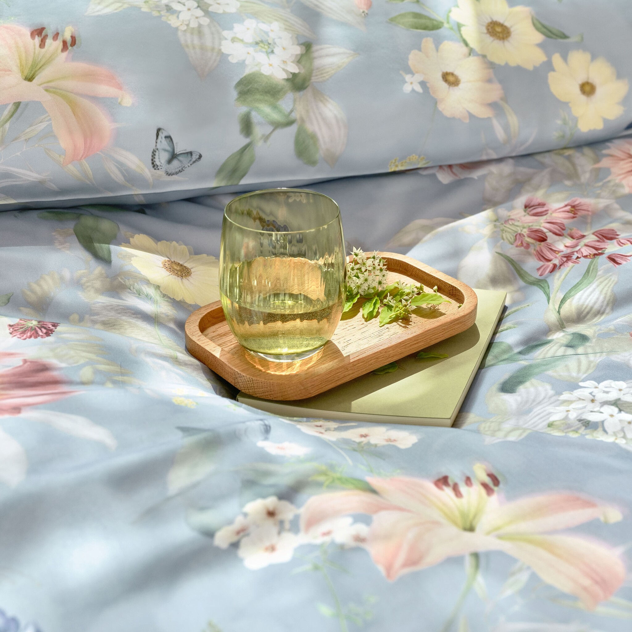 Zie hoe bloemen en bladeren zacht heen en weer dansen, of samen met kleine vlinders door de lucht zweven. De volgende windvlaag brengt de warmte van de zon naar binnen en vervaagt op elegante wijze de kleuren en motieven van het bedlinnen. Dit zorgt voor een speels maar tegelijkertijd rustgevend design, dat je slaapkamer een lichte en natuurlijke uitstraling geeft.