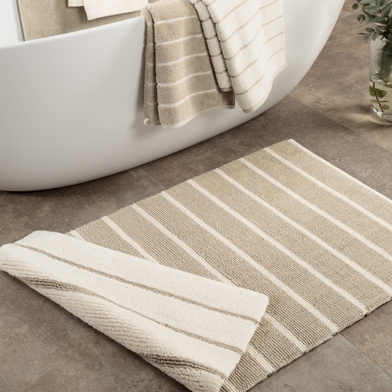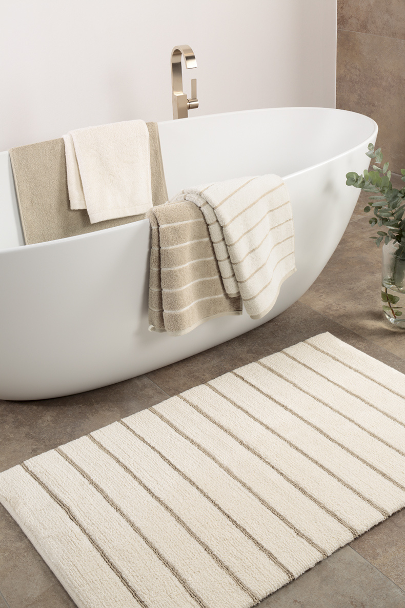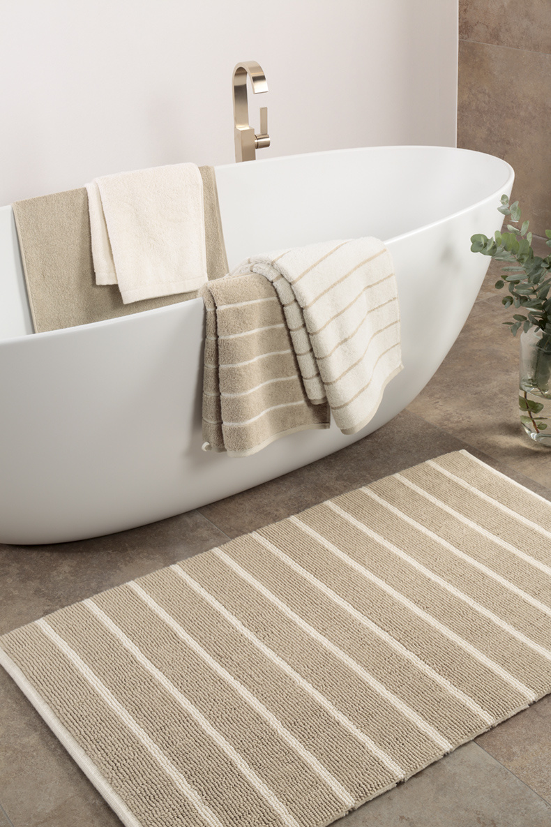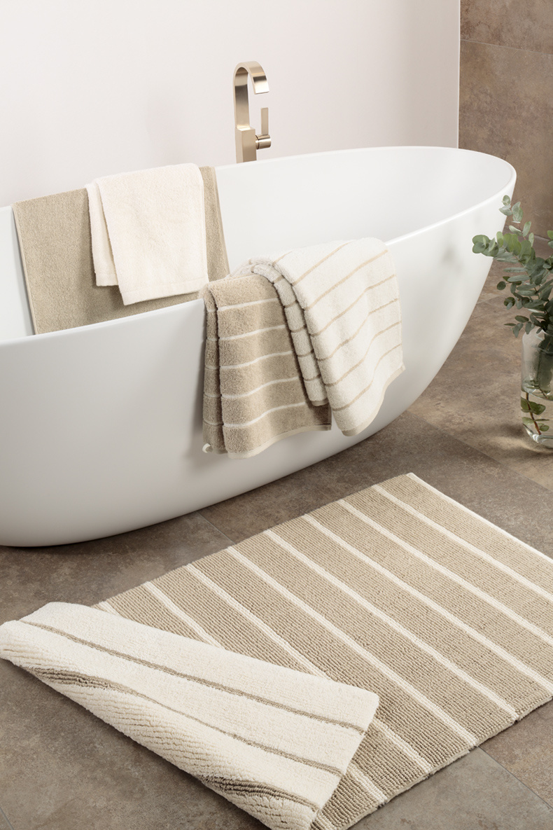 Stylingtip Combineer de Balance badmat natur (33) met de gelijknamige handdoeken en het saunalaken voor een rustgevende, ton-sur-ton wellnessbeleving. Voeg accessoires in licht hout, linnen en zandtinten toe voor een warme, serene look.