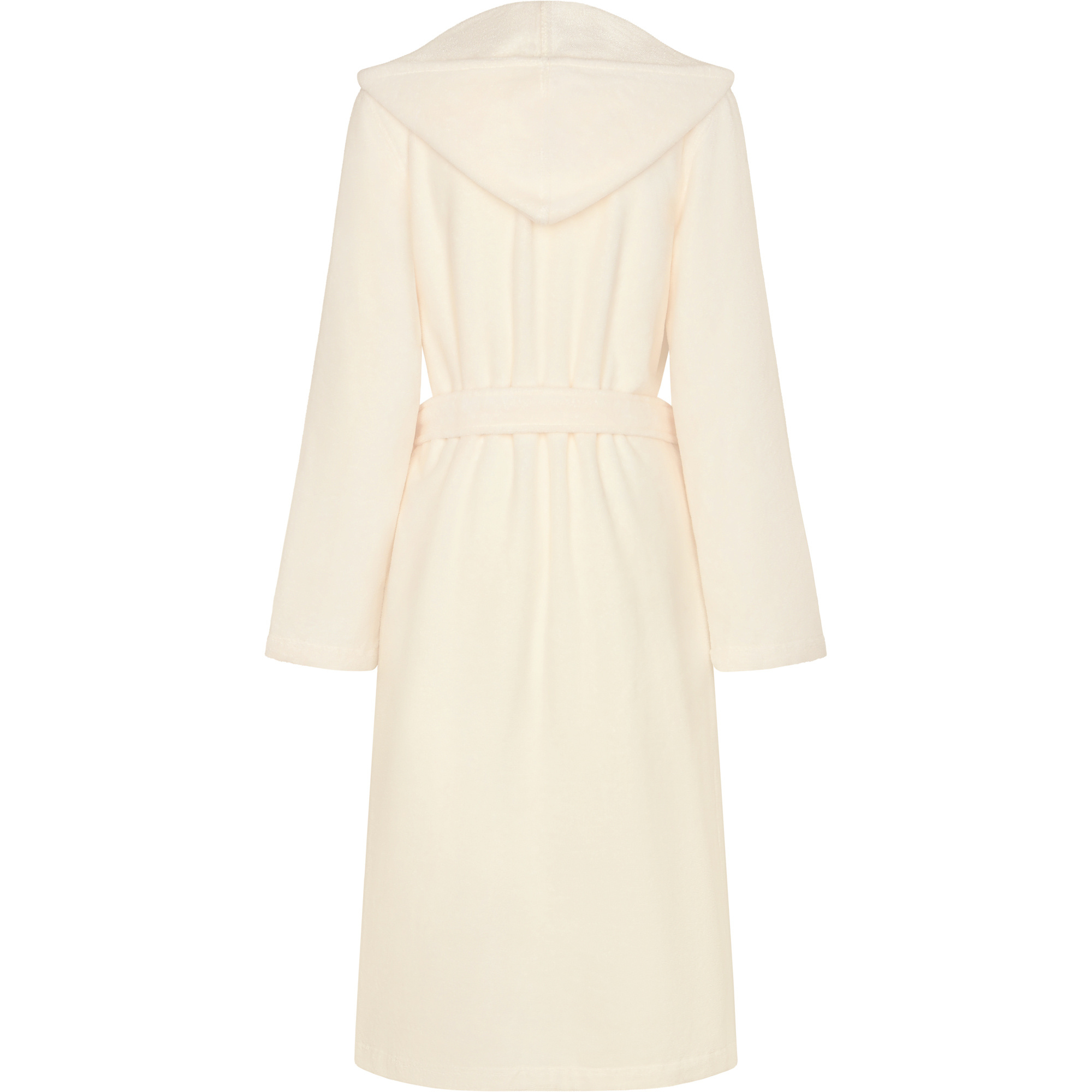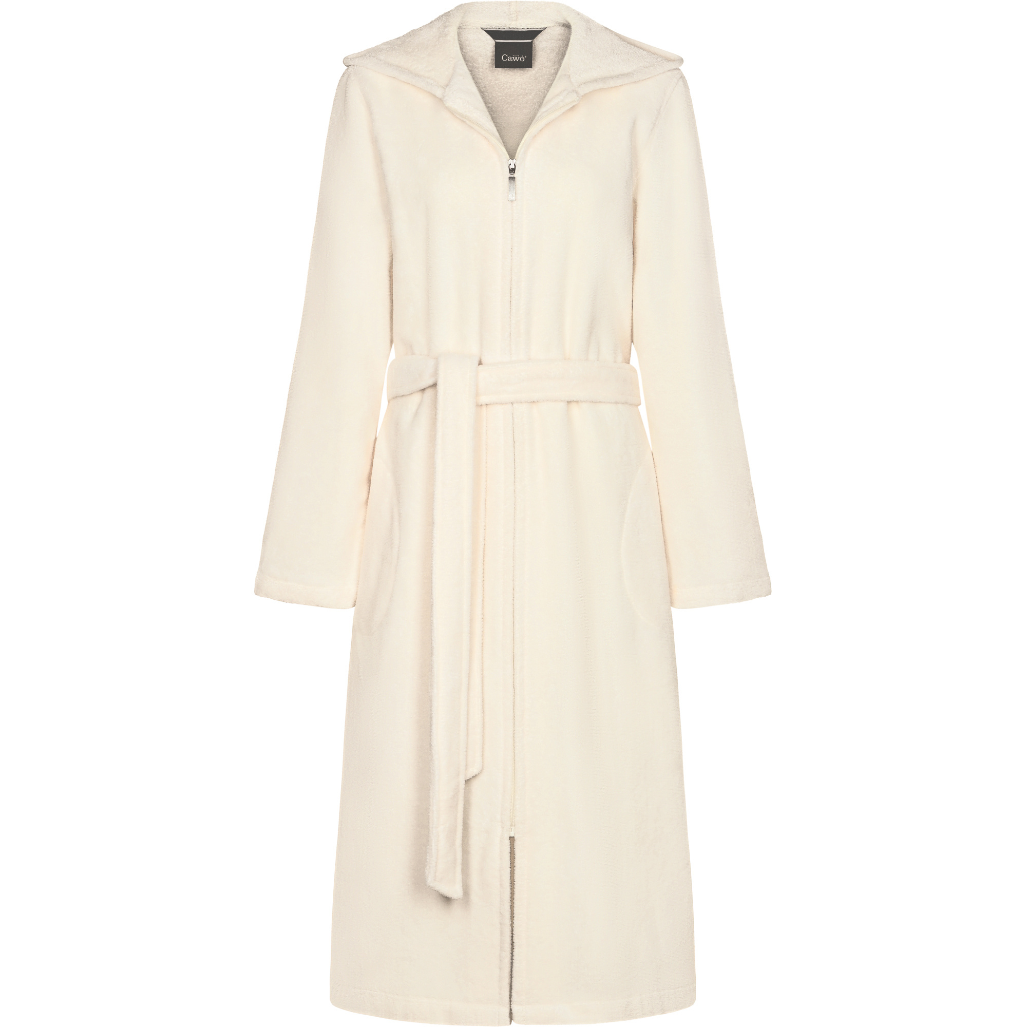 Cawö dames badjas 837 champagner met rits en capuchon.
