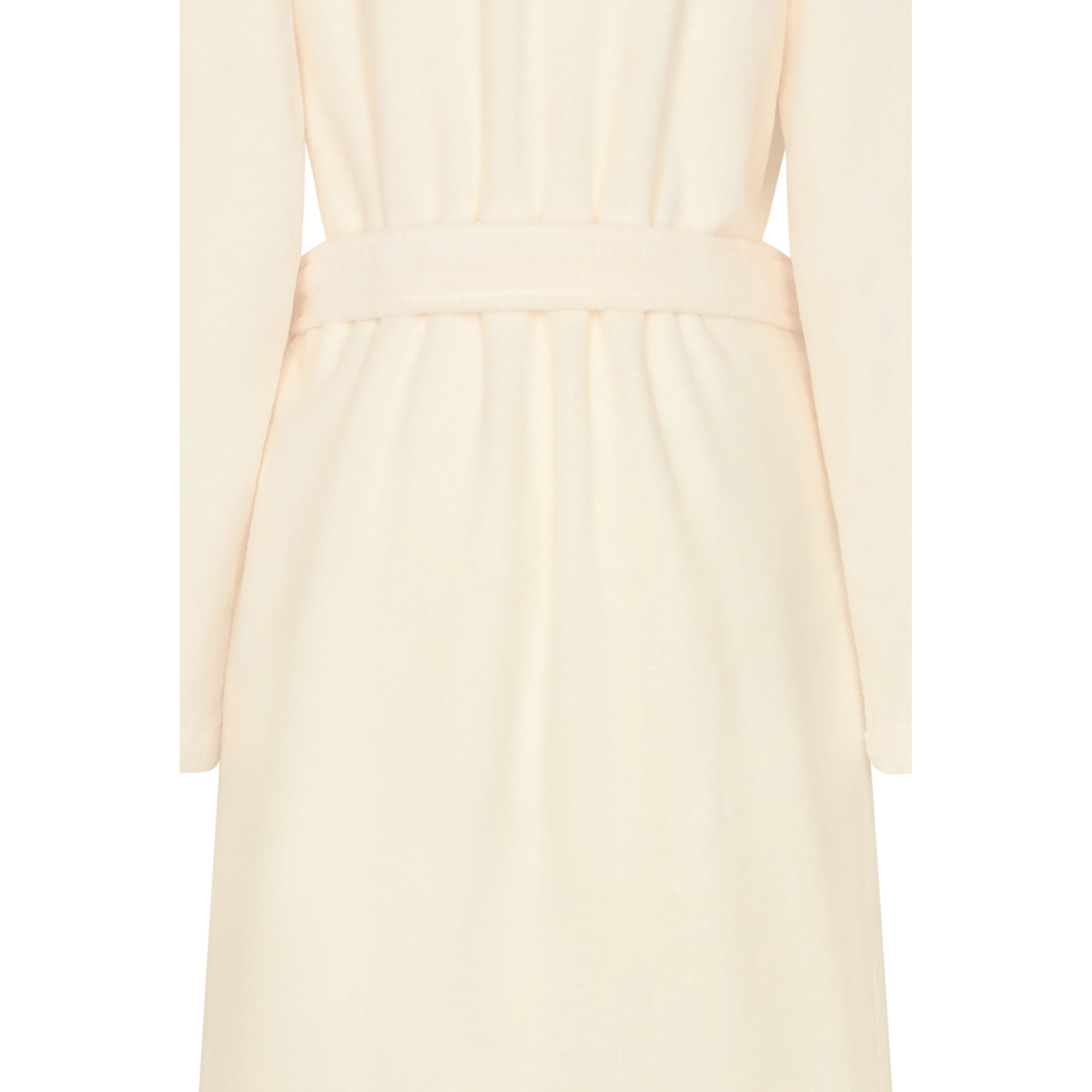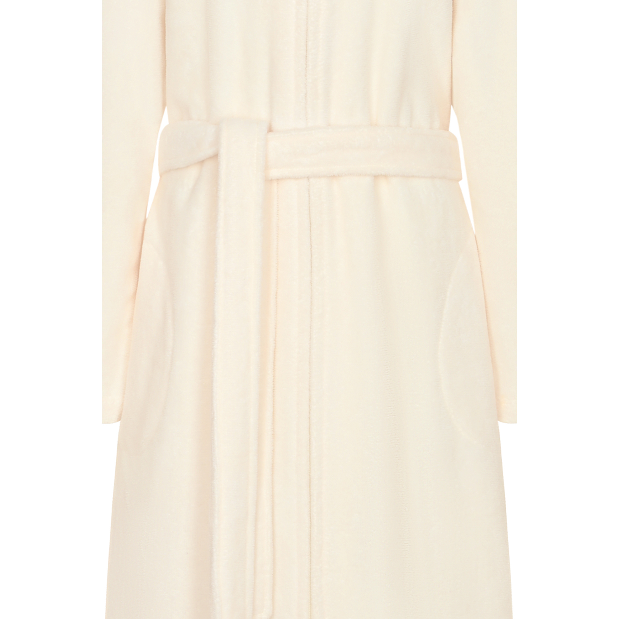 Verwen jezelf met de Cawö dames badjas 837 in de kleur champagner. Deze stijlvolle badjas in een zachte roomwitte tint heeft een comfortabele pasvorm en voelt heerlijk zacht aan op de huid. De subtiele kleur en het tijdloze ontwerp geven de badjas een luxe uitstraling, perfect voor een ontspannen begin of einde van de dag.