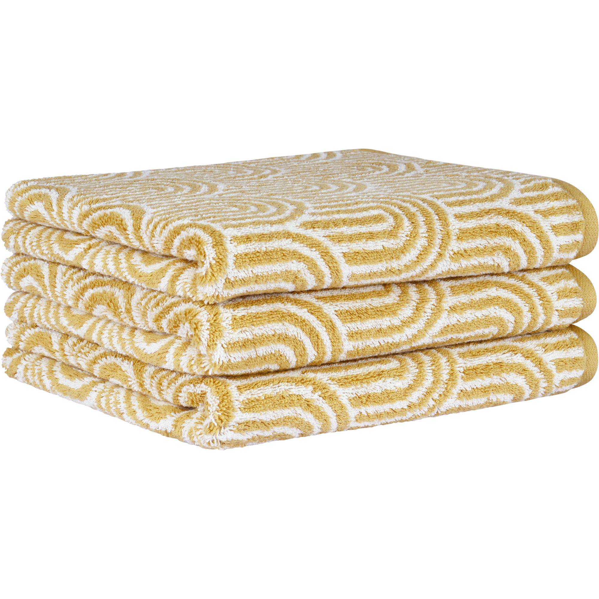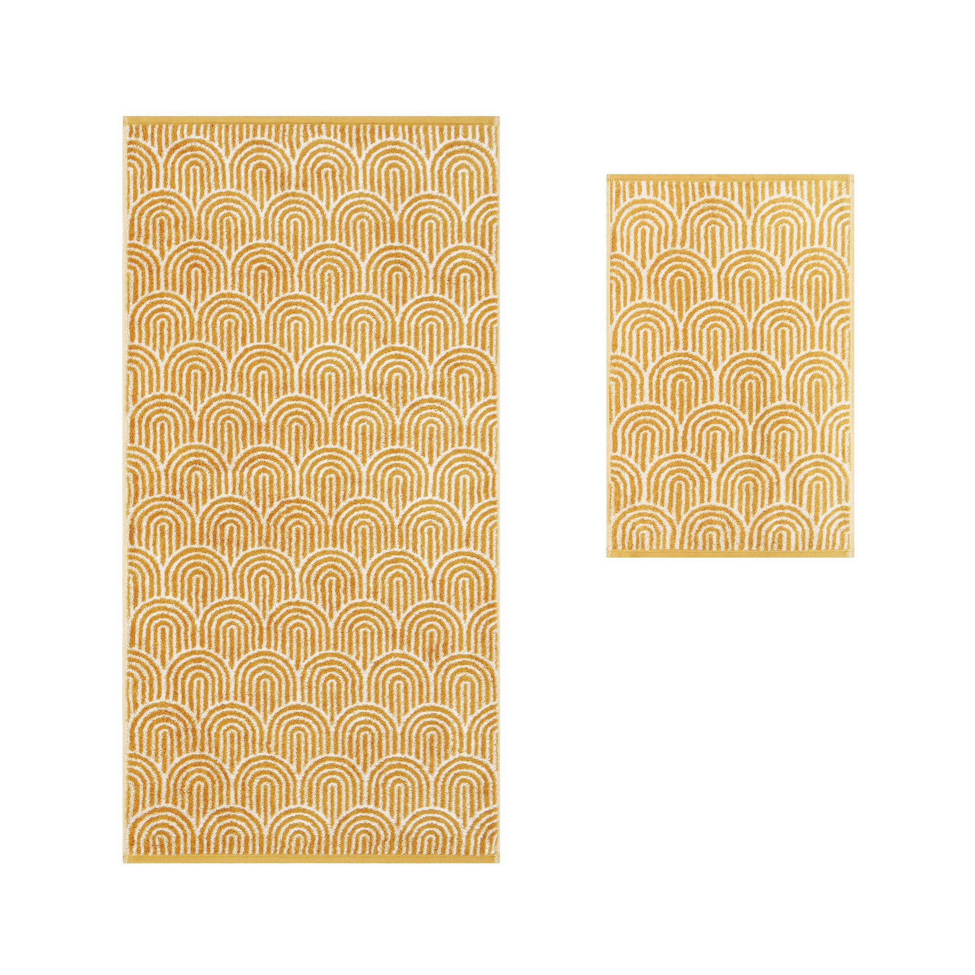 Stylingtip Combineer de Maison Arcs gold (35) handdoek met de effen handdoekenlijn Lifestyle 7007 natur (351) voor een rustige; tonale badkamer. Voeg de Maison Leaves handdoeken toe voor een elegante gelaagdheid; een hotelsfeer waarin structuur, zachtheid en luxe perfect samenkomen.