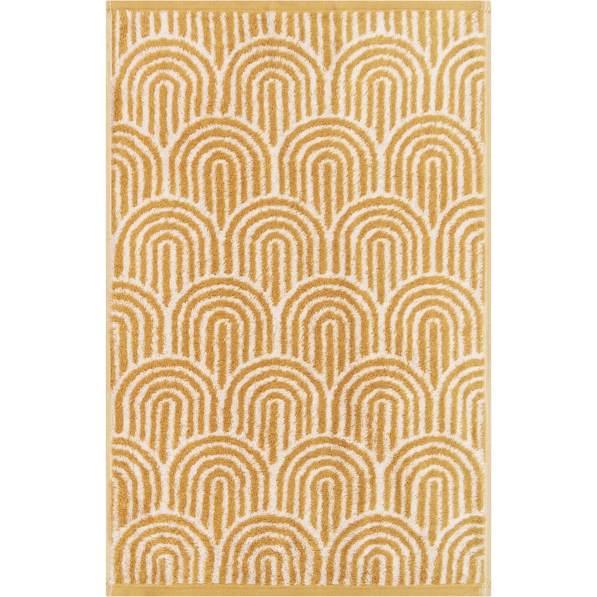 De Cawö Maison Arcs 6268 handdoek in gold (35) staat voor rustige luxe en verfijnde eenvoud. Deze hoogwaardige handdoek is geweven van 100% gekamd katoen; een volle; zachte kwaliteit die heerlijk aanvoelt op de huid en uitstekend absorbeert. Het elegante bogenmotief van de Arcs-lijn geeft de handdoek een moderne structuur; subtiel, grafisch, chic en perfect voor een badkamer met klasse.