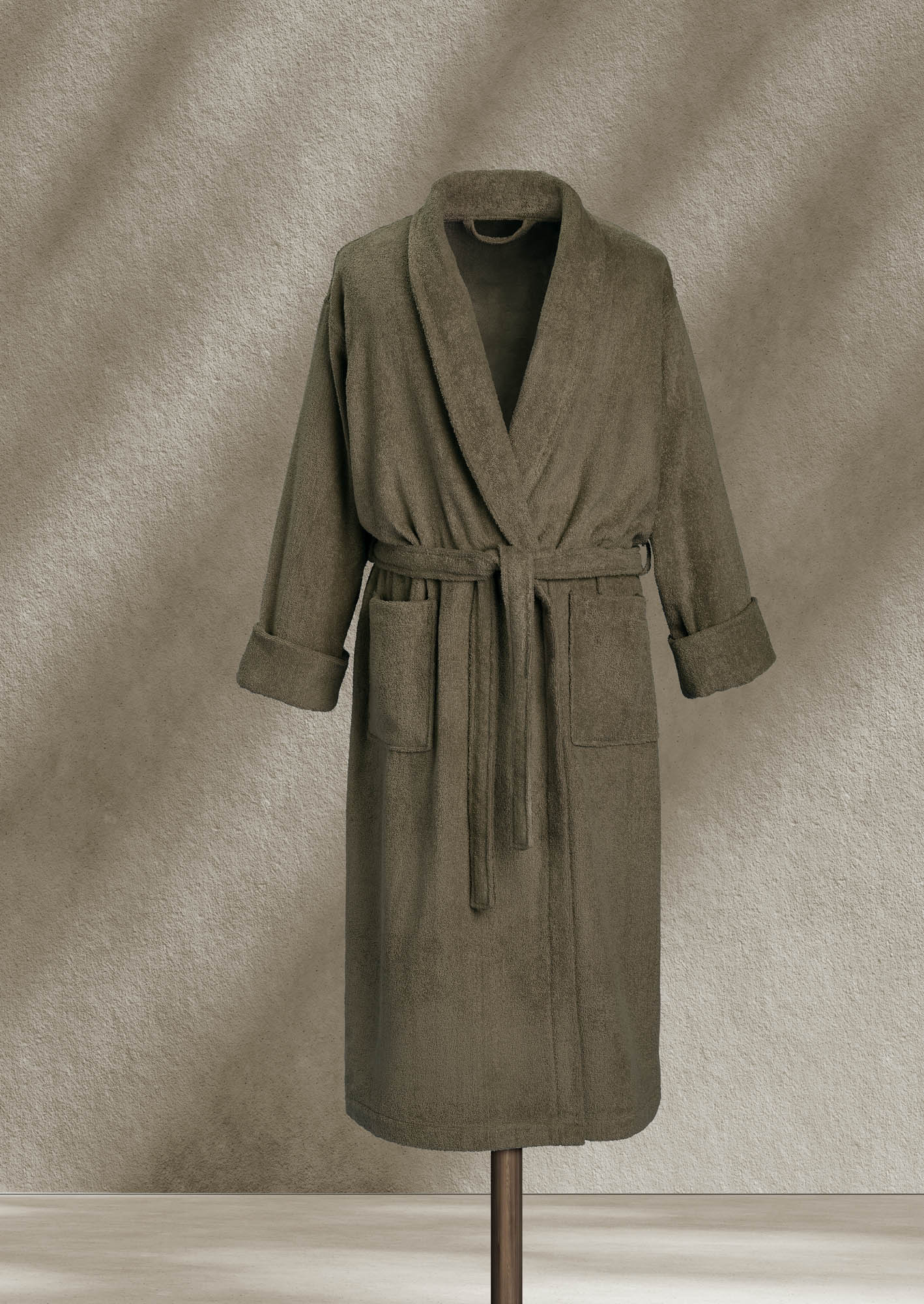 De Etrusk badjas is elegant vormgegeven met een luxe shawlkraag, opgenaaide zakken en een mooie ceintuur om de taille te accentueren. Dankzij het hoogwaardige katoen is de badjas ademend, comfortabel en duurzaam in gebruik. Met een lengte van ±125 cm valt de badjas royaal tot over de knie, wat zorgt voor extra warmte en een elegante uitstraling.