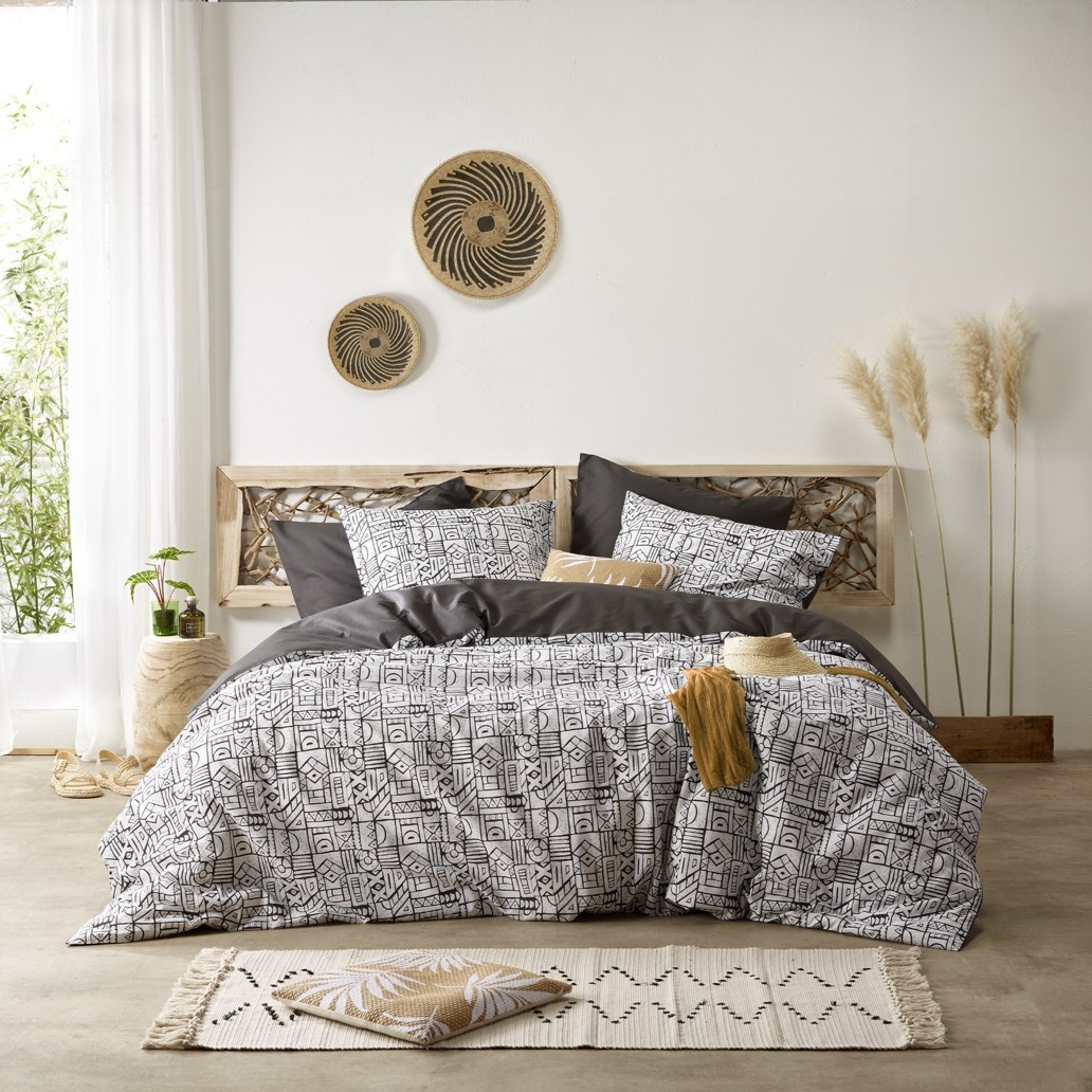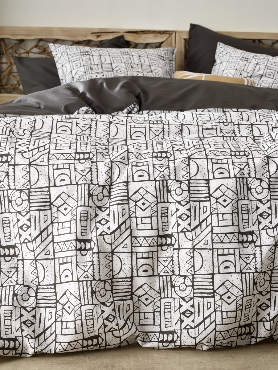 Met de Cuzco dekbedovertrekset van De Witte Lietaer in de kleur stone grey brengt een intrigerend en grafisch ontwerp dat geïnspireerd is op de oude Inca-cultuur. Dit krachtige en artistieke patroon, een mix van geometrische vormen en symbolen, brengt een vleugje culturele diepgang aan elke slaapkamer.