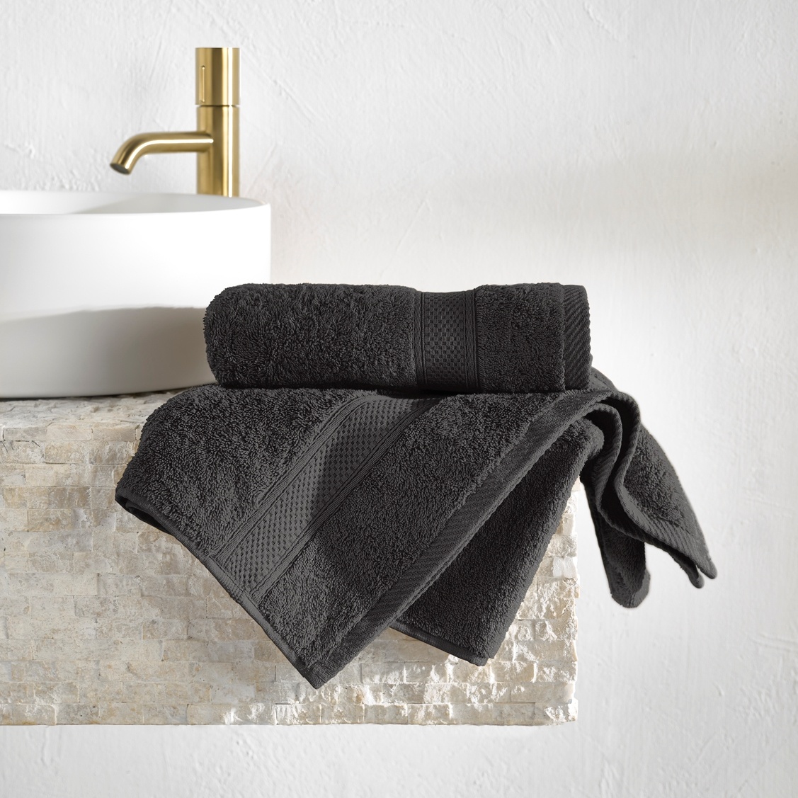 De badlijn Stephanie van De Witte Lietaer is een handdoekenlijn met tijdloze boord, die past bij iedere mogelijke stijl van badkamer. Het kleurenpalet bestaat uit een mix van moderne tot trendy kleuren, waaronder de kleur ebony, een mooie donkere grijstint.