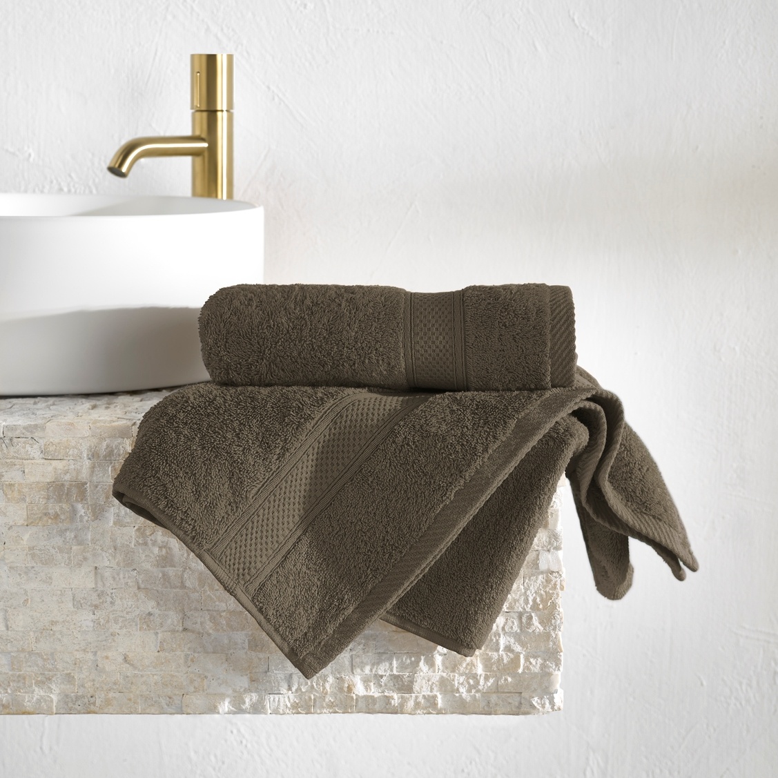 De badlijn Stephanie van De Witte Lietaer in de kleur falcon (een kleisteen - turf tint) is een handdoekenlijn uit de Smart Collection, met tijdloze boord, die past bij iedere mogelijke stijl van badkamer. Het kleurenpalet bestaat uit een mix van moderne tot trendy kleuren.