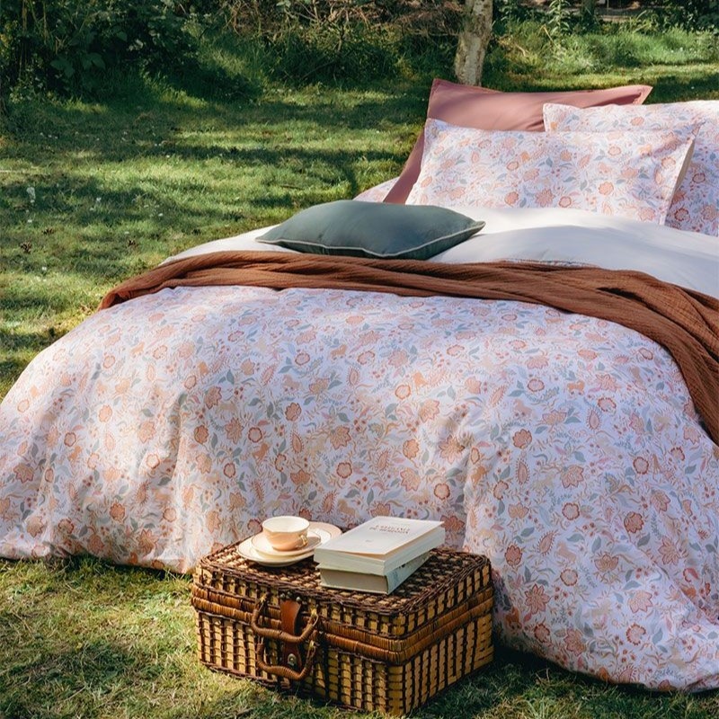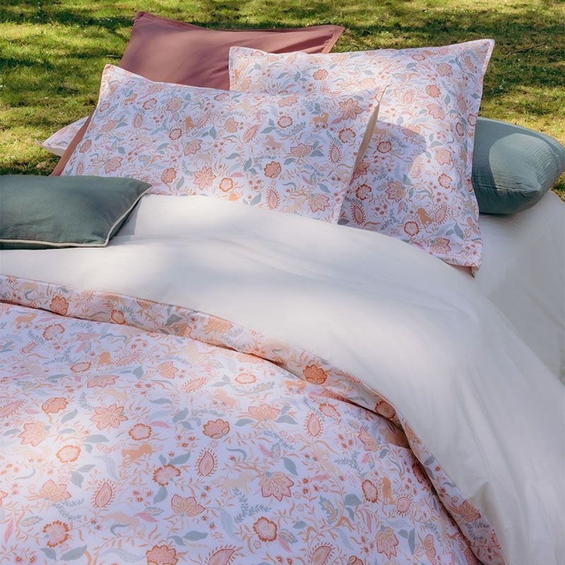 Dankzij de sterke, gladde percale weving blijft het overtrek mooi in vorm en kleur, was na was. Combineer het met bijpassende kussenslopen lingerie, ballerineof bois de rose voor een perfect opgemaakt bed vol comfort en klasse. Zowel de kussenslopen als het dekbedovertrek hebben bedrukking op de voorkant en een effen lingerie kleur op de achterkant.