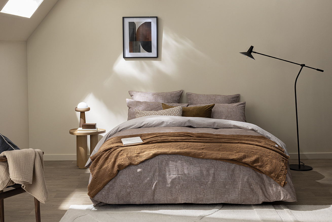 Breng een moderne, natuurlijke sfeer in je slaapkamer met het dekbedovertrek Géo Minéral van Essix.