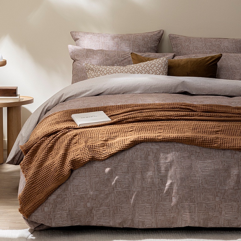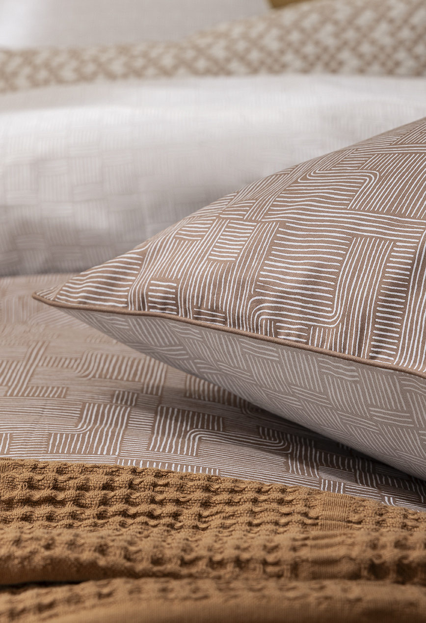 Met de sierkussen Gatsby sépia en plaids Mirage, Yogi amande of Jazzy biscuit maakt u het geheel in styl af.