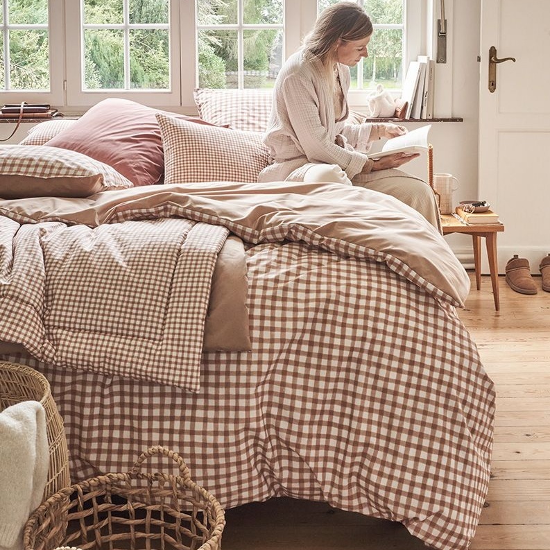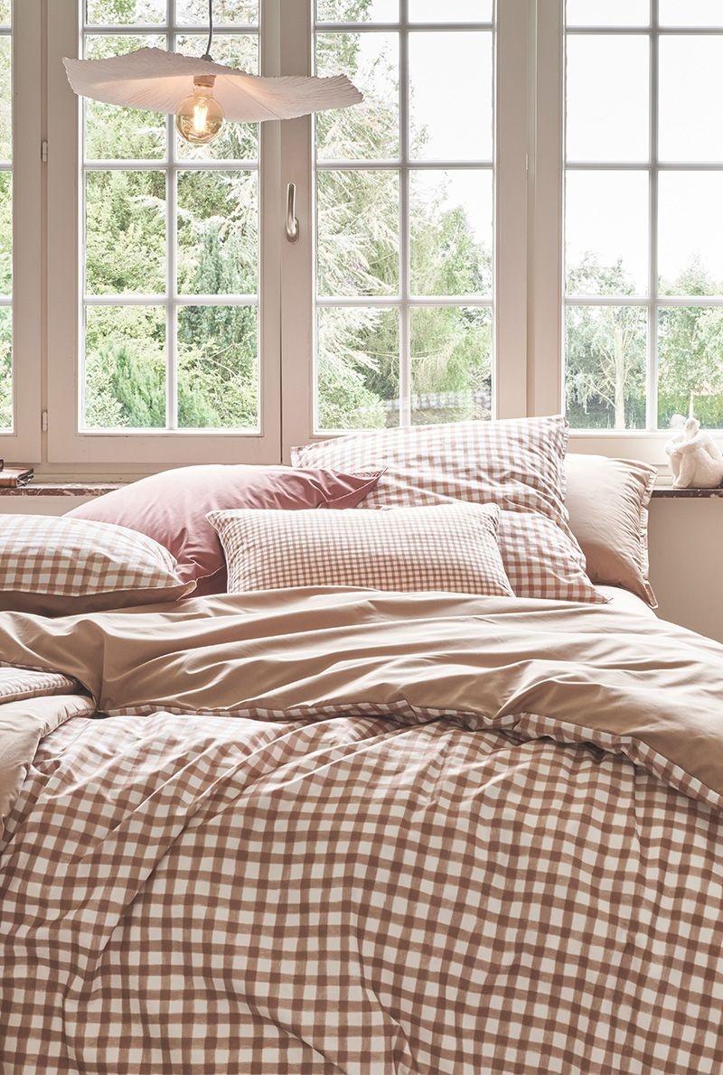 Het Vichy Beige-design, met zijn subtiele ruitpatroon in warme beige tinten, straalt eenvoud en verfijning uit. De neutrale kleuren passen perfect in elk interieur – van modern tot landelijk – en creëren een serene, uitnodigende sfeer.
