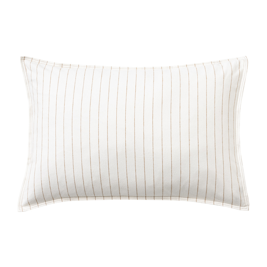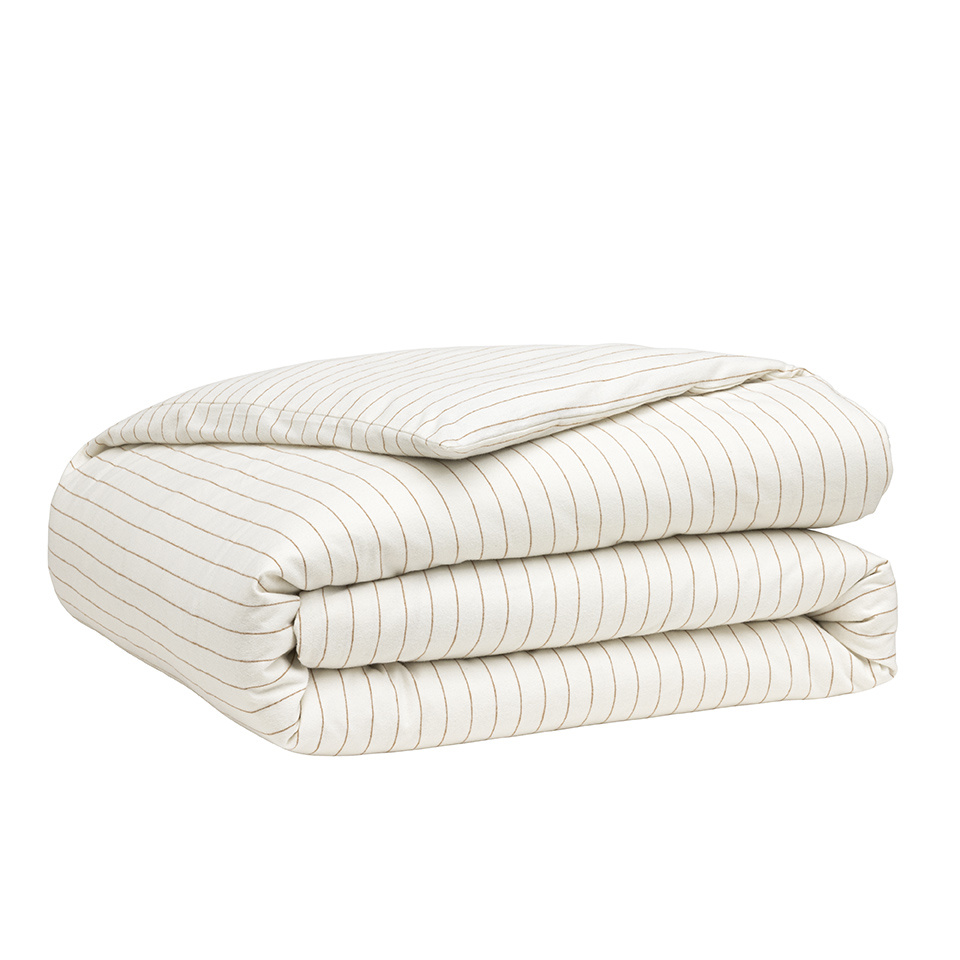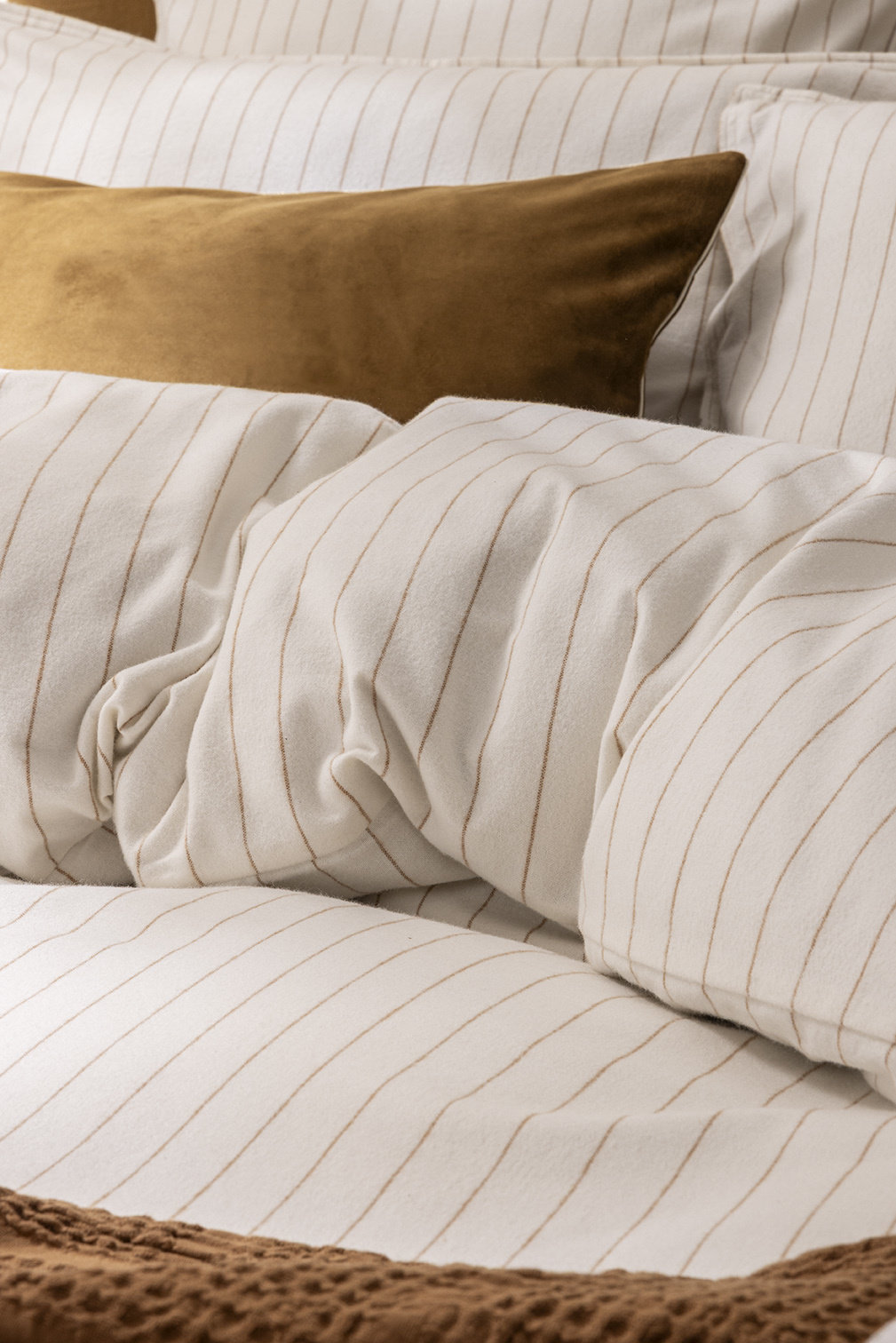 Er gaat niets boven flanel van 100% katoen voor koele nachten en ontspanningsmomenten. Equilibre combineert een stof van weleer met hedendaags inspiratie. Deze set is versierd met elegante licht bruine strepen op een zachte ecru achtergrond en is ontworpen als een tijdloos basisitem om even gemakkelijk met motieven als met effen stoffen te combineren. L