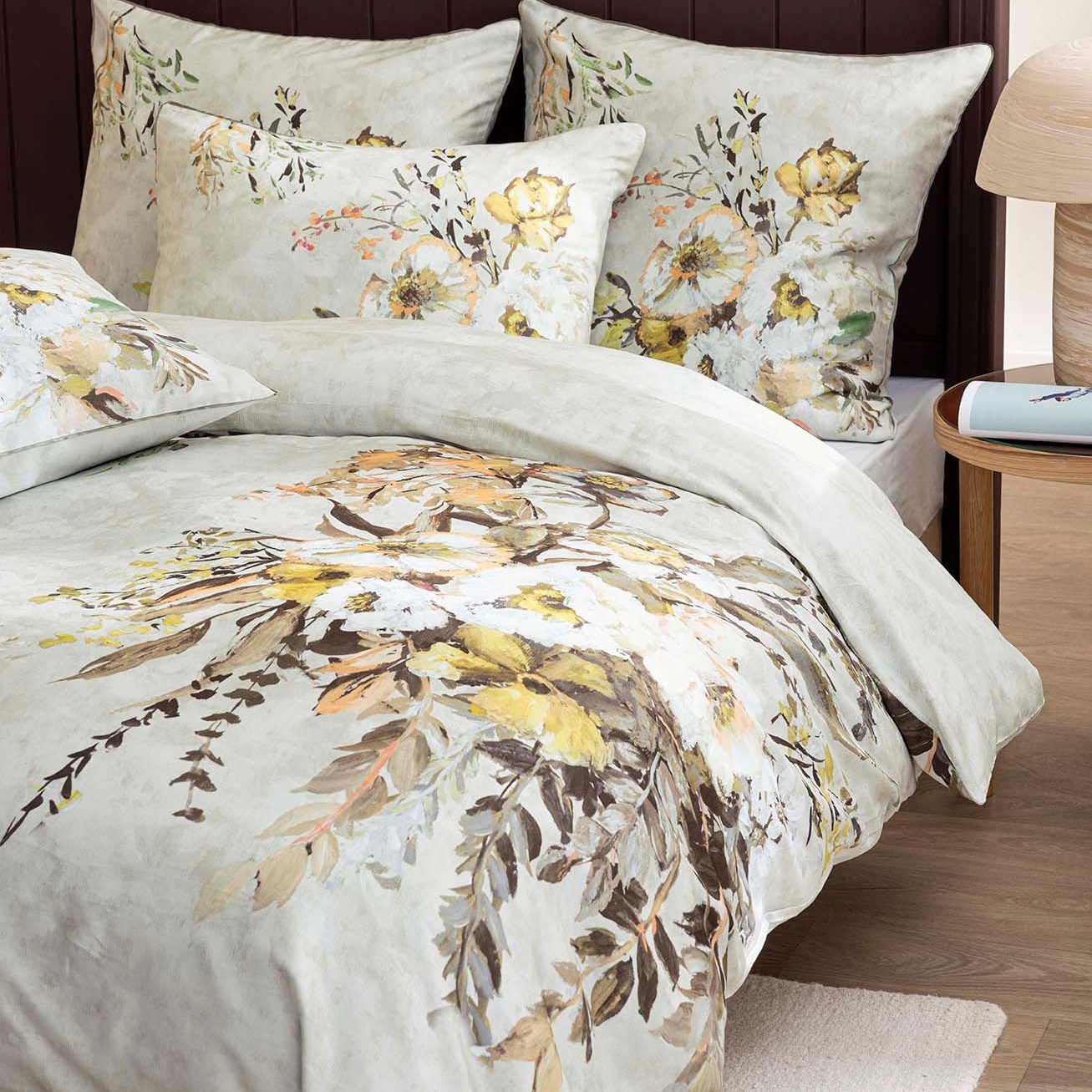 Kenmerken: ✔ Materiaal; 100% katoen satijn, 200TC; ✔ Zacht, glad en ademend; luxe kwaliteit; ✔ Warm sepia bloemendessin met aquarel-effect; ✔ Keerbaar ontwerp; ✔ Satijnweving; lichte glans en soepel vallende stof; ✔ Wasbaar op 60°C; geschikt voor de droger op lage temperatuur (kreukherstellend en behoedzaam); ✔ Sluiting met flessenhals.
