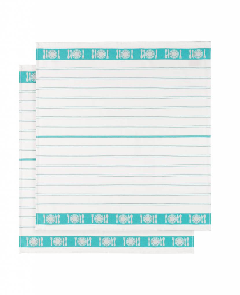 Deze 100% katoenen BML droogdoeken / theedoeken hebben de royale maat van 65x65 cm en zijn zeer fijntjes geweven in een frisse combinatie van wit en aqua.