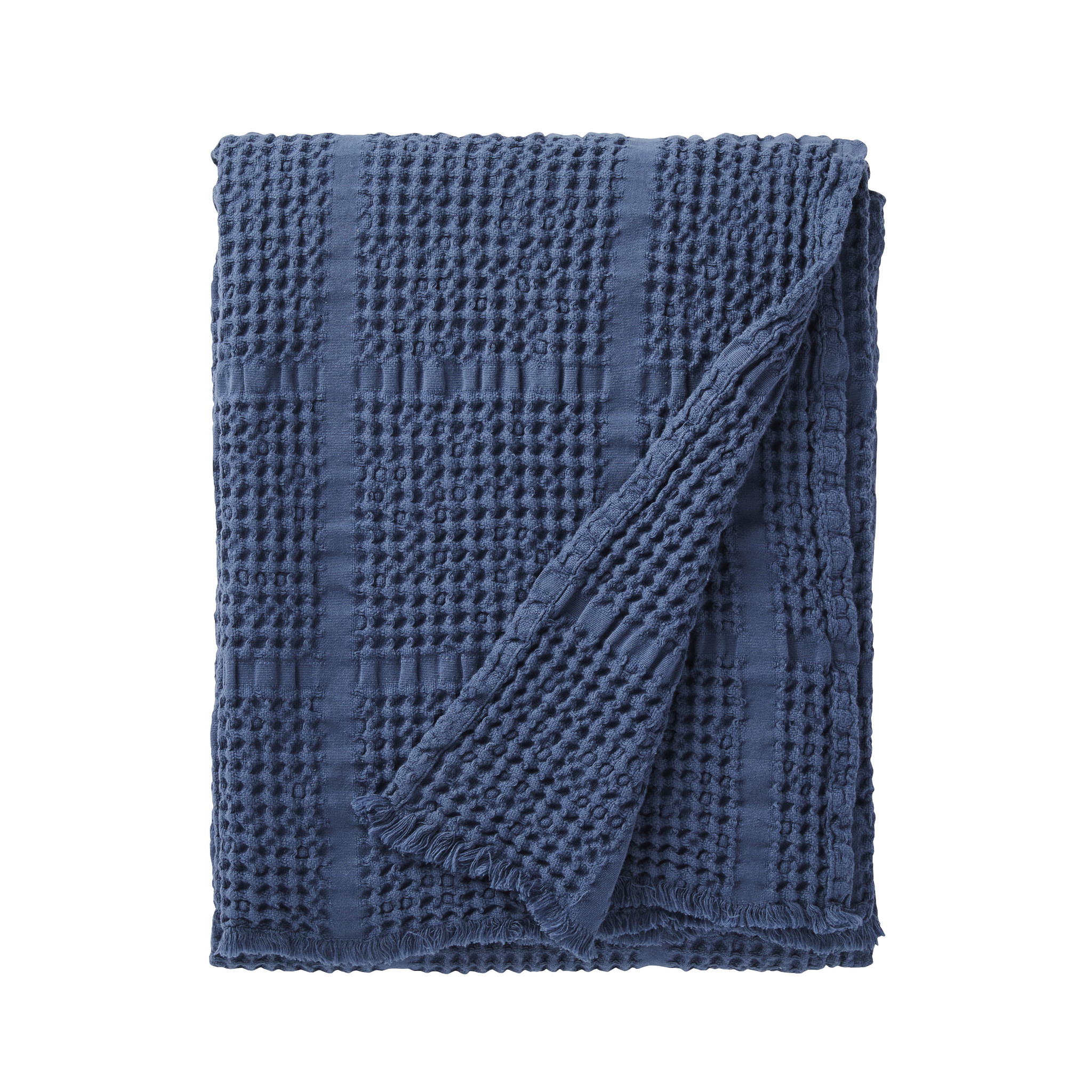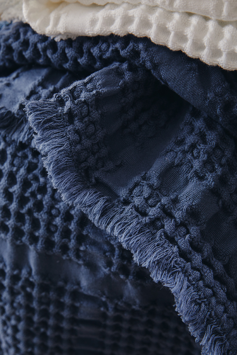 Deze prachtige plaid met de afmeting 240x260 cm, is afgewerkt met een zoom, geweven van 100% katoen en valt mooi en soepel!