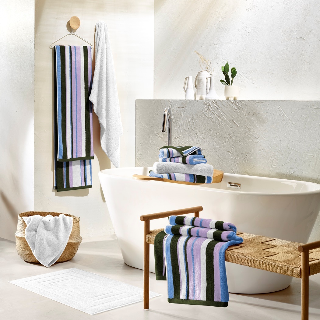 Deze leuke gestreepte handdoeken zijn ook mooi te combineren met de andere badlijnen van De Witte Lietaer.