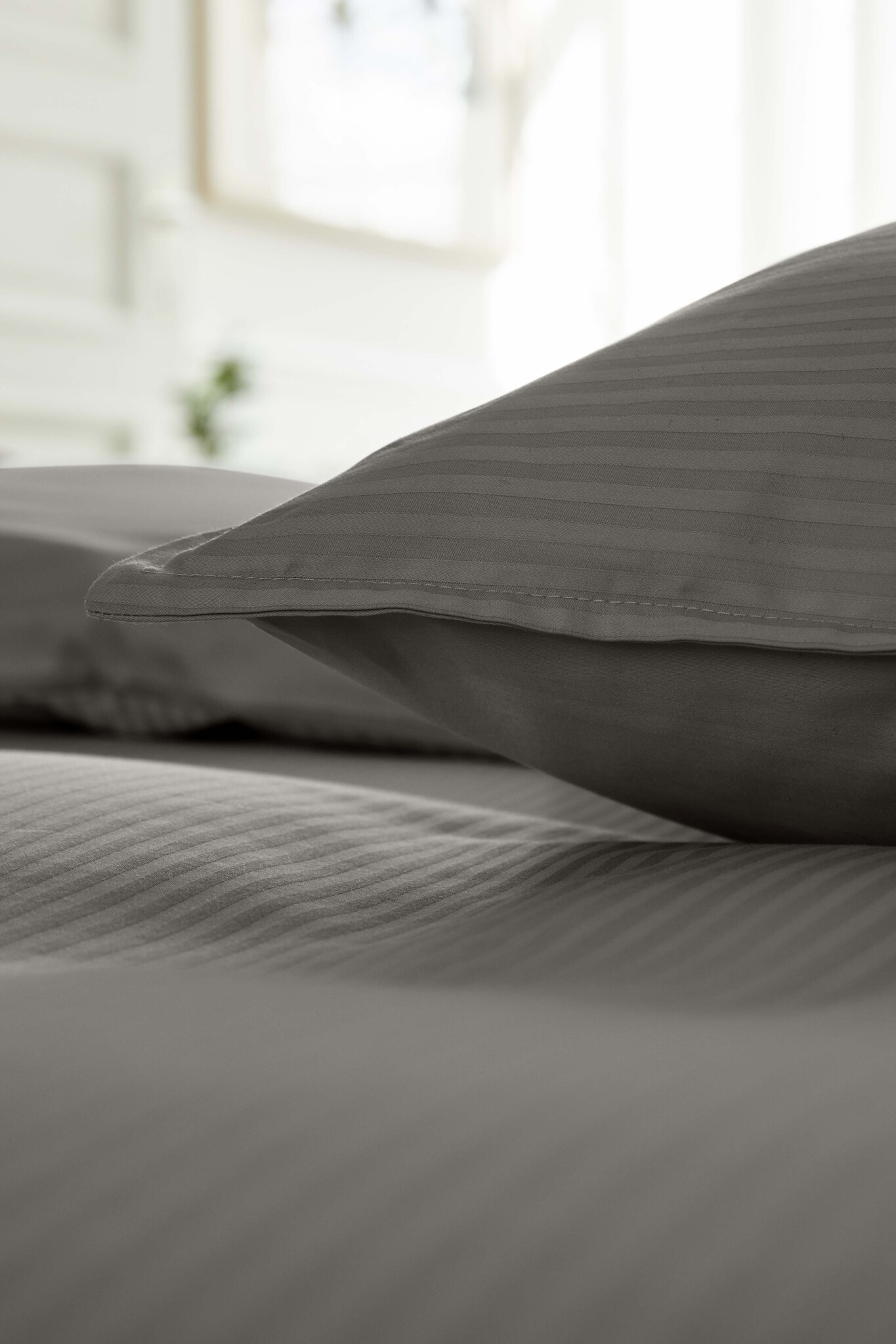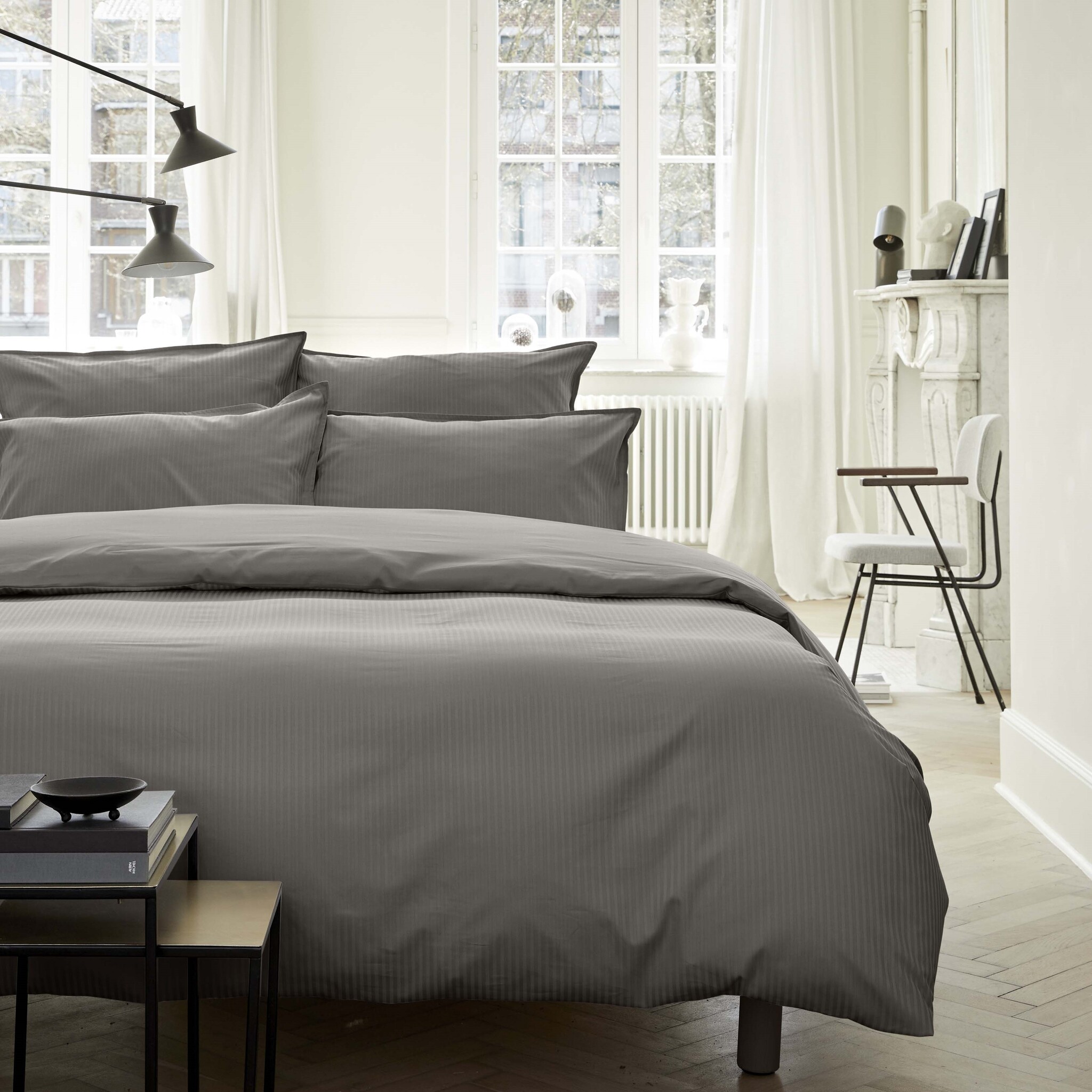 Transformeer de weekendbeleving in een dagelijks avontuur met de Grand Hotel zinc van Essix. Een betaalbare luxe voor deze 120 draden/cm² gestreepte satijnen jacquard (305TC), in schitterend ton sur ton blauw op blauw variatie. Het is de perfecte combinatie van stijl, verfijning, zachtheid en duurzaamheid.