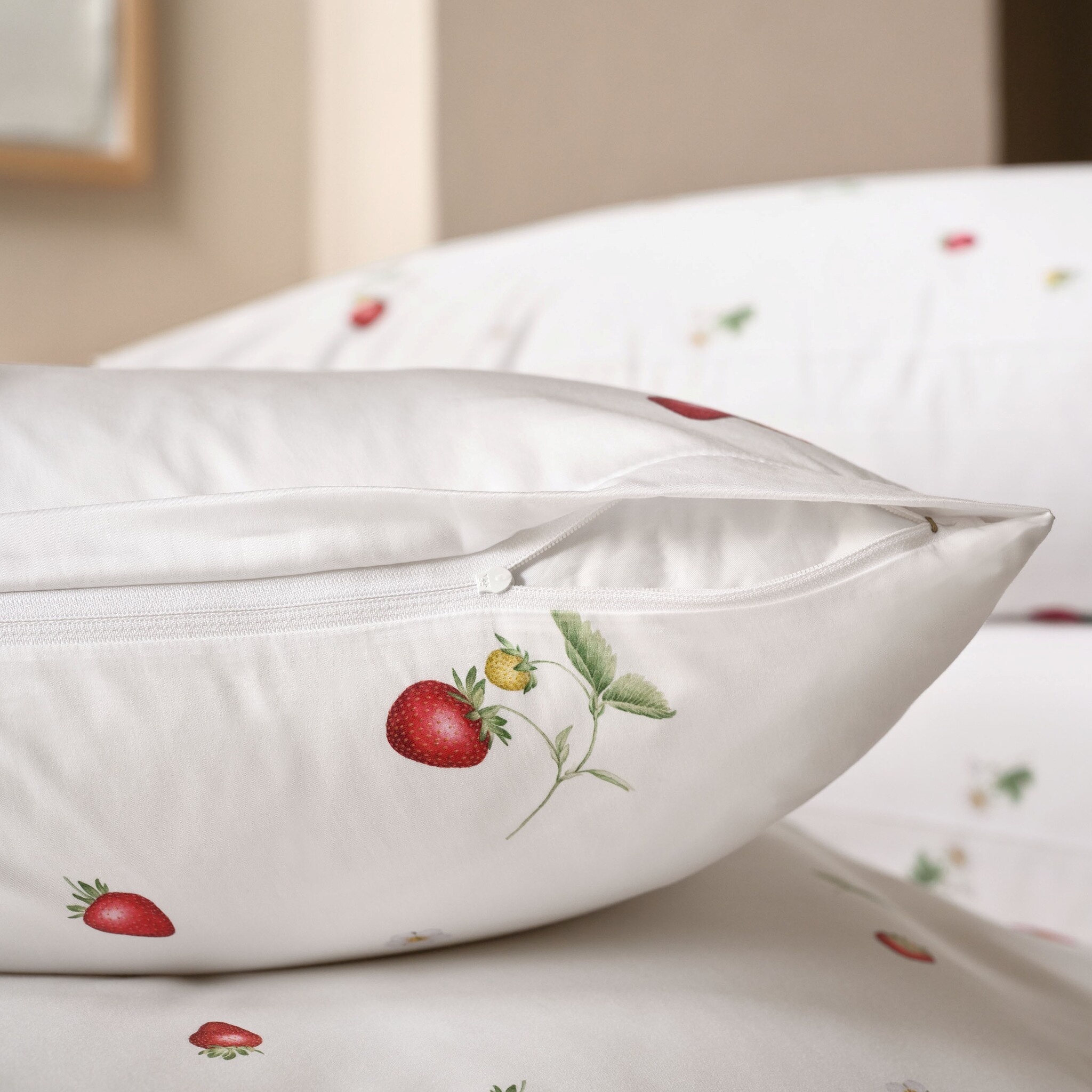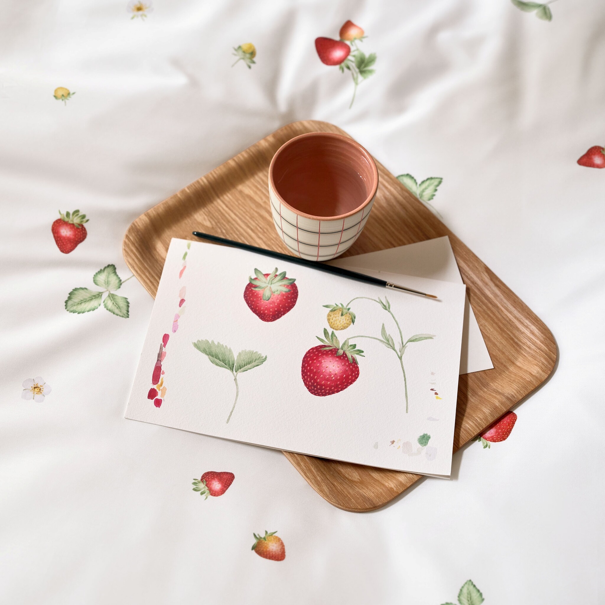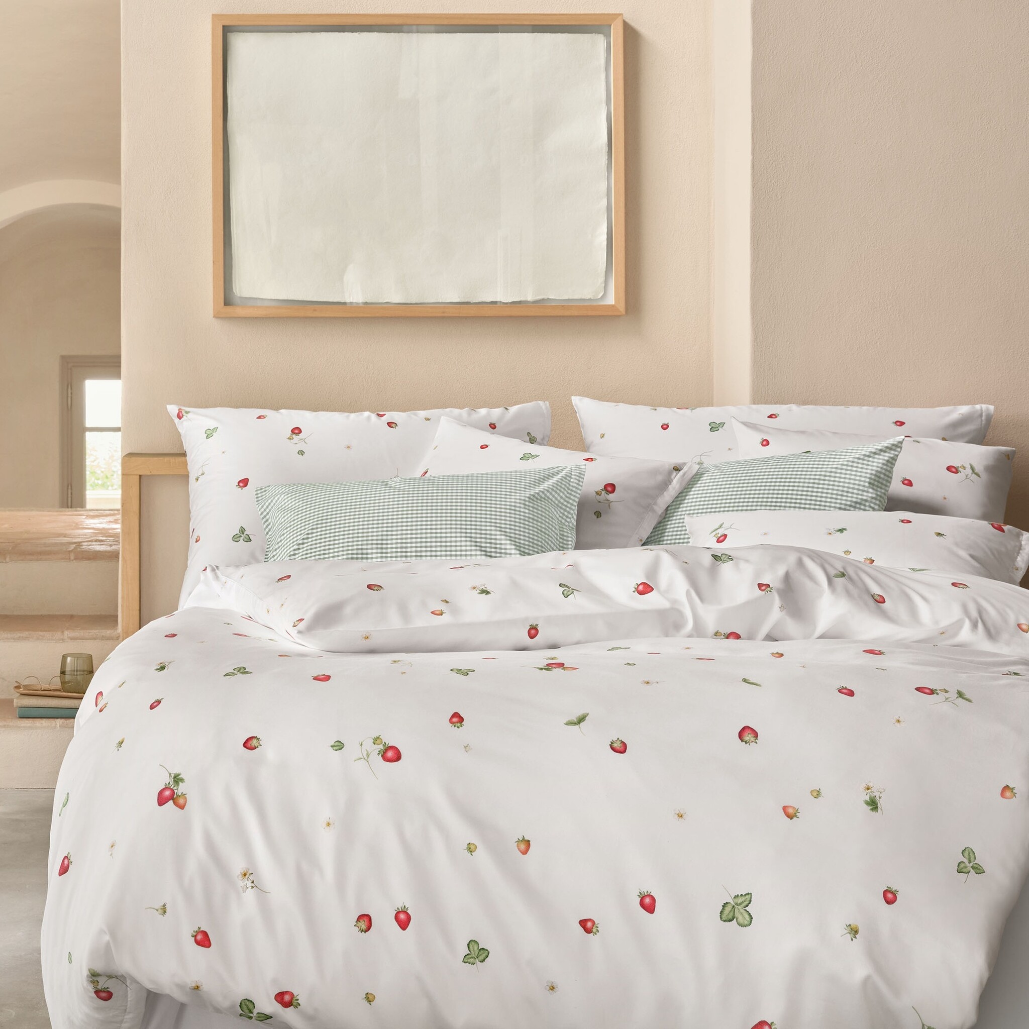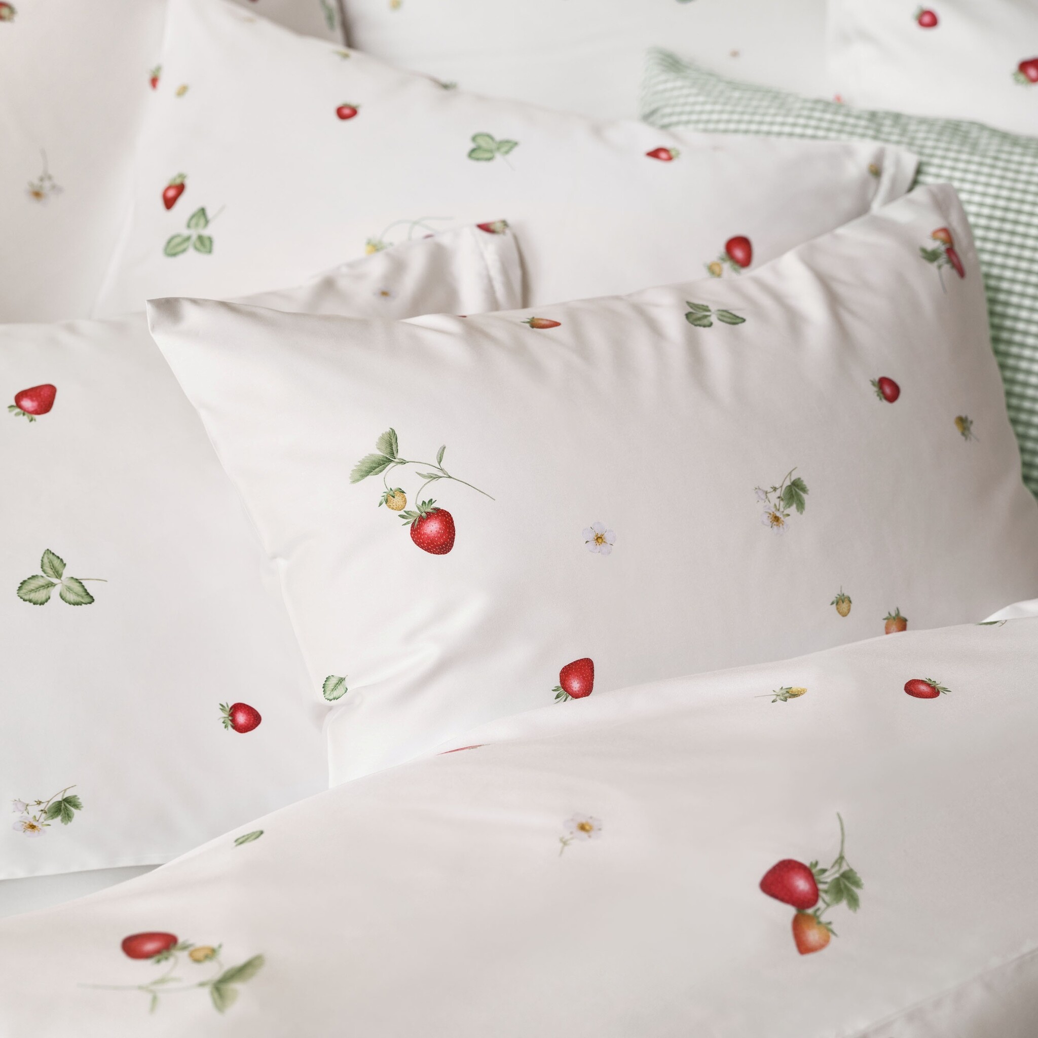 Is het mogelijk om die tijdloze, betrouwbare periode aan het einde van de lente en de onmiskenbaar zoete smaak van het begin van de zomer vast te leggen? Wij denken van wel! Van bloesem tot dieprode, zoete vrucht, June presenteert de verschillende stadia van de aardbei en vult, naast de tuin en de keuken, nu ook de slaapkamer met zijn tijdloze kleuren rood, groen en wit. Dit beddengoedontwerp is speels, fris en zo zorgeloos als lange zomerdagen. Het is een must-have voor alle aardbeienliefhebbers en zal je gegarandeerd vullen met pure verwachting voor elke nieuwe ontmoeting.