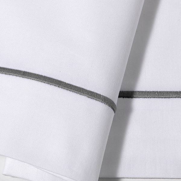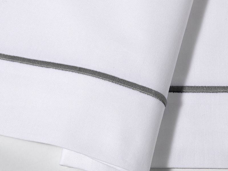 Deze prachtig elegante lakens Dylan van het merk Casilin (voorheen Bellora) zijn gemaakt in wit 100% gekamd Egyptisch katoen (percale) met een graphite bourdon.