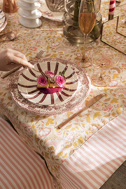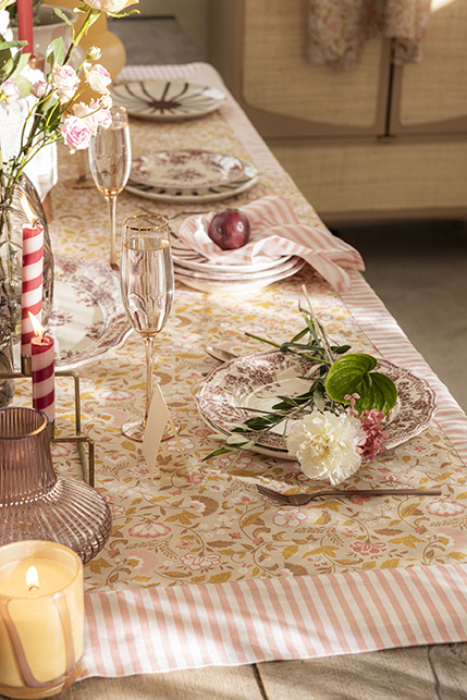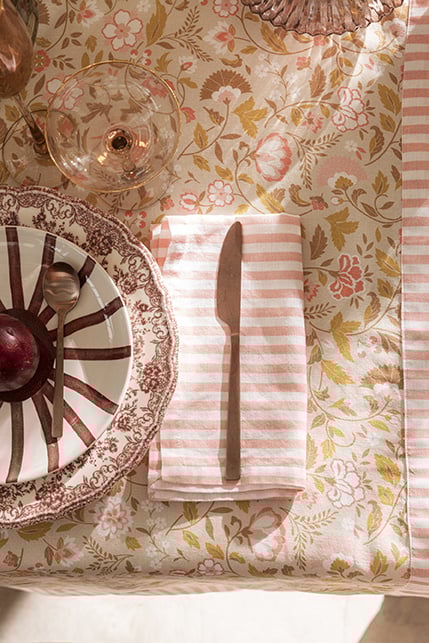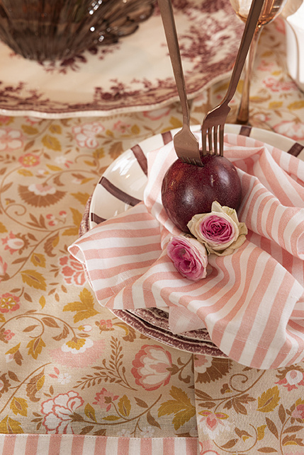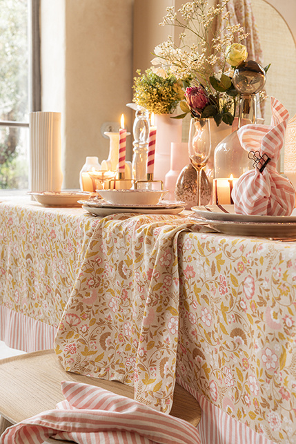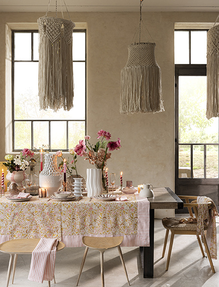 Zoals de naam al doet vermoeden, benadrukt het dessin Boheme van Le Jacquard Français de gezellige en nomadische sfeer voor dit bedrukte tafelgoed in halflinnen. Met opnieuw bezochte Indiase invloeden en geïnspireerd door de katoenen stoffen uit de Provence, betovert dit decoratieve ontwerp het huis met zijn zachte en veelkleurige palet.
