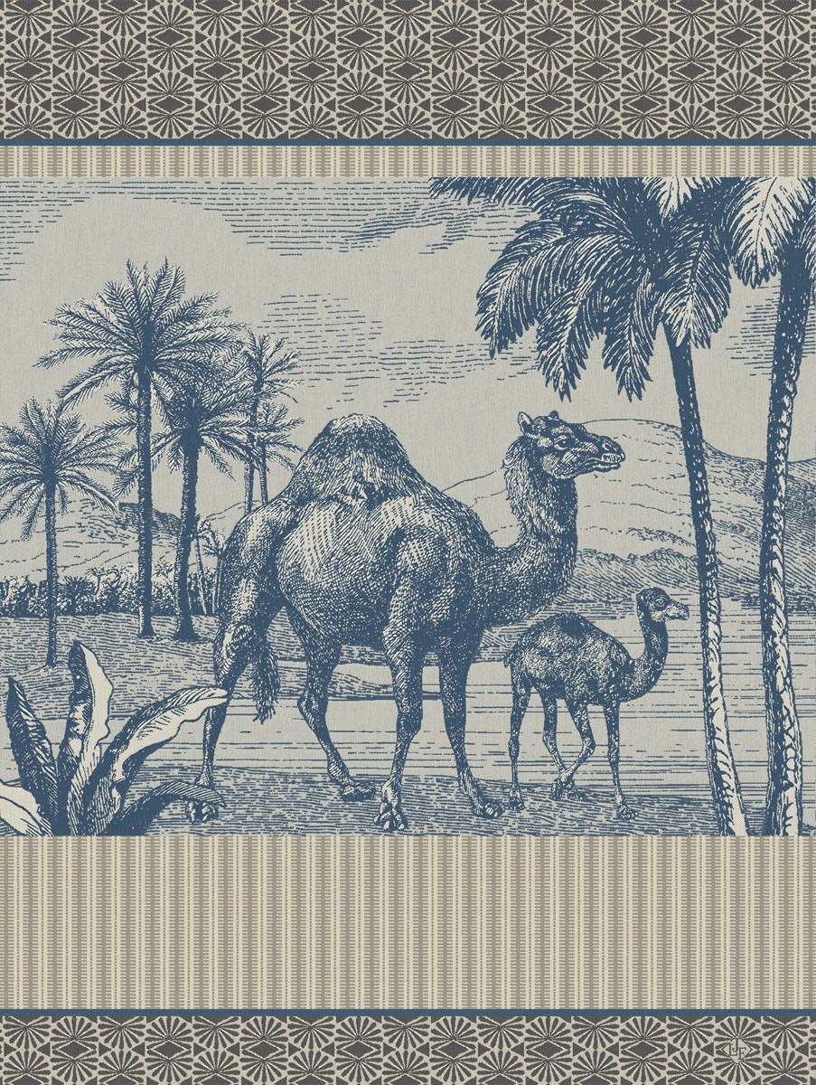 Het Dune Dromadaire-patroon in blauw geeft uw keuken een subtiele, chique uitstraling. De theedoek is sterk absorberend, duurzaam en behoudt zijn kleur en kwaliteit, zelfs na veelvuldig wassen. Voor een complete en harmonieuze keukenstijl kan deze theedoek perfect gecombineerd worden met de Dune Rayures blue theedoek, waardoor een stijlvol en complementair duo ontstaat.