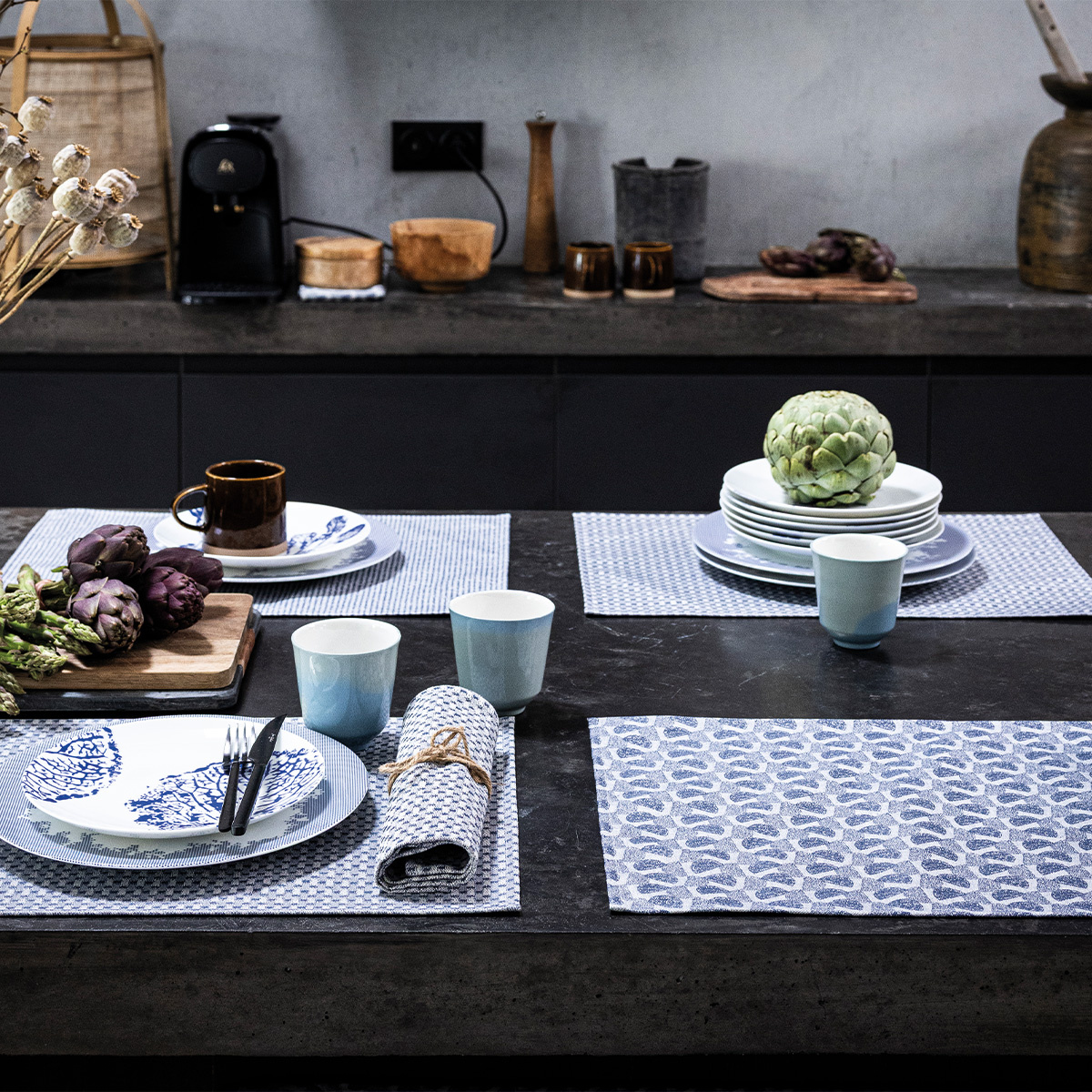 ✔ Re-Fil” garen: 50% gerecyclede vezels en 50% nieuwe katoenvezels ✔ Jacquard geweven; rijk dessin met tijdloze details; ✔ Maat placemat: 50x36 cm ✔ Schoonmaken met een vochtige doek ✔ Leuk te combineren met bijpassende servetten Empreintes Rayures ✔ Ook bijpassende tafellaken Empreintes cobalt blue ✔ Made in France; traditioneel vakmanschap sinds 1888.