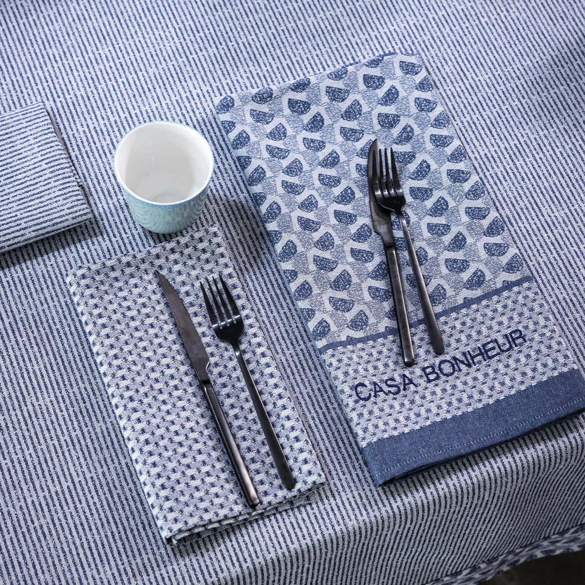 ✔ Re-Fil” garen: 50% gerecyclede vezels en 50% nieuwe katoenvezels ✔ Jacquard geweven; rijk dessin met tijdloze details; ✔ Maat servet: 50x50 cm ✔ Wasbaar op 60°C; eenvoudig en hygiënisch in onderhoud; ✔ Leuk te combineren met bijpassende gecoate placemats Empreintes Tissage ✔ Ook bijpassende tafellaken Empreintes cobalt blue ✔ Made in France; traditioneel vakmanschap sinds 1888.