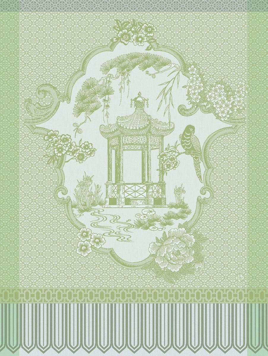 Met de Promenade Impériale green theedoek voegt u een serene, artistieke en luxueuze sfeer toe aan uw keuken, waarin Franse verfijning en Aziatische inspiratie elkaar ontmoeten.