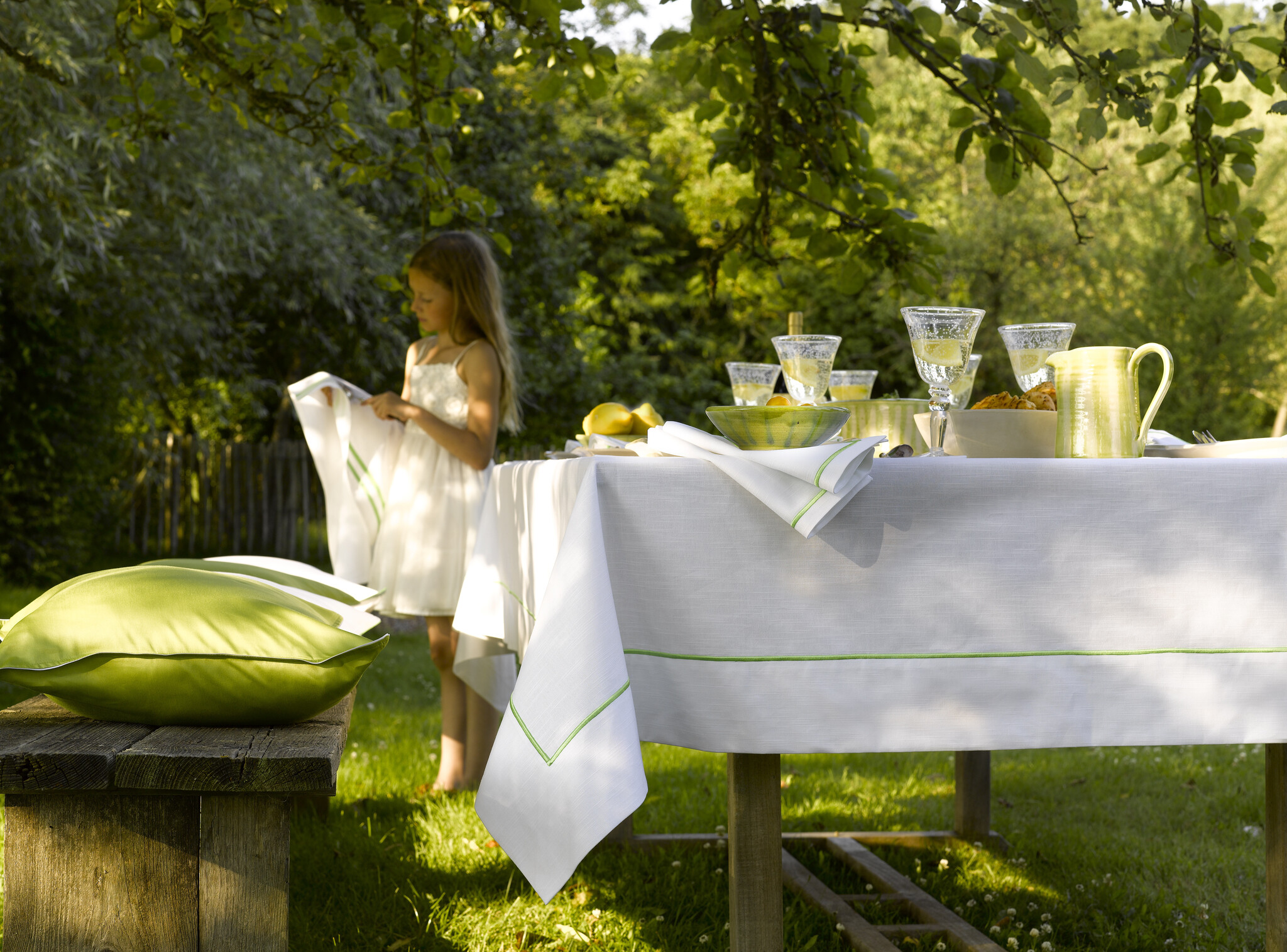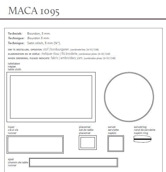 Chique en tijdloos door zijn eenvoud, is het ontwerp Maca uit de collectie van Mirabel Slabbinck. Het mooie sierstiksel (bourdon) van 5 mm breed geeft de finishing touch aan dit prachtige tafellinnen. Gemaakt in de maat, kleur en stof die u wenst!