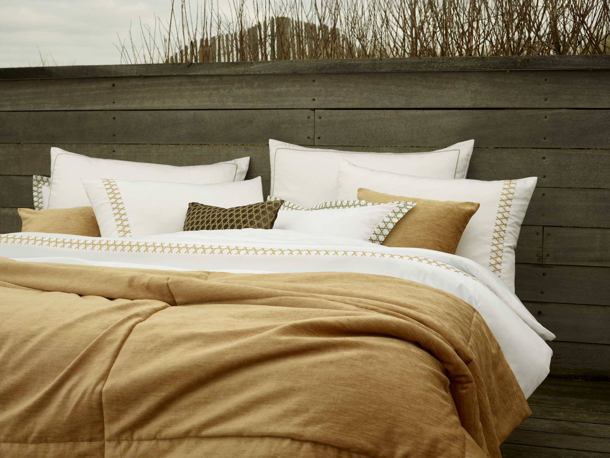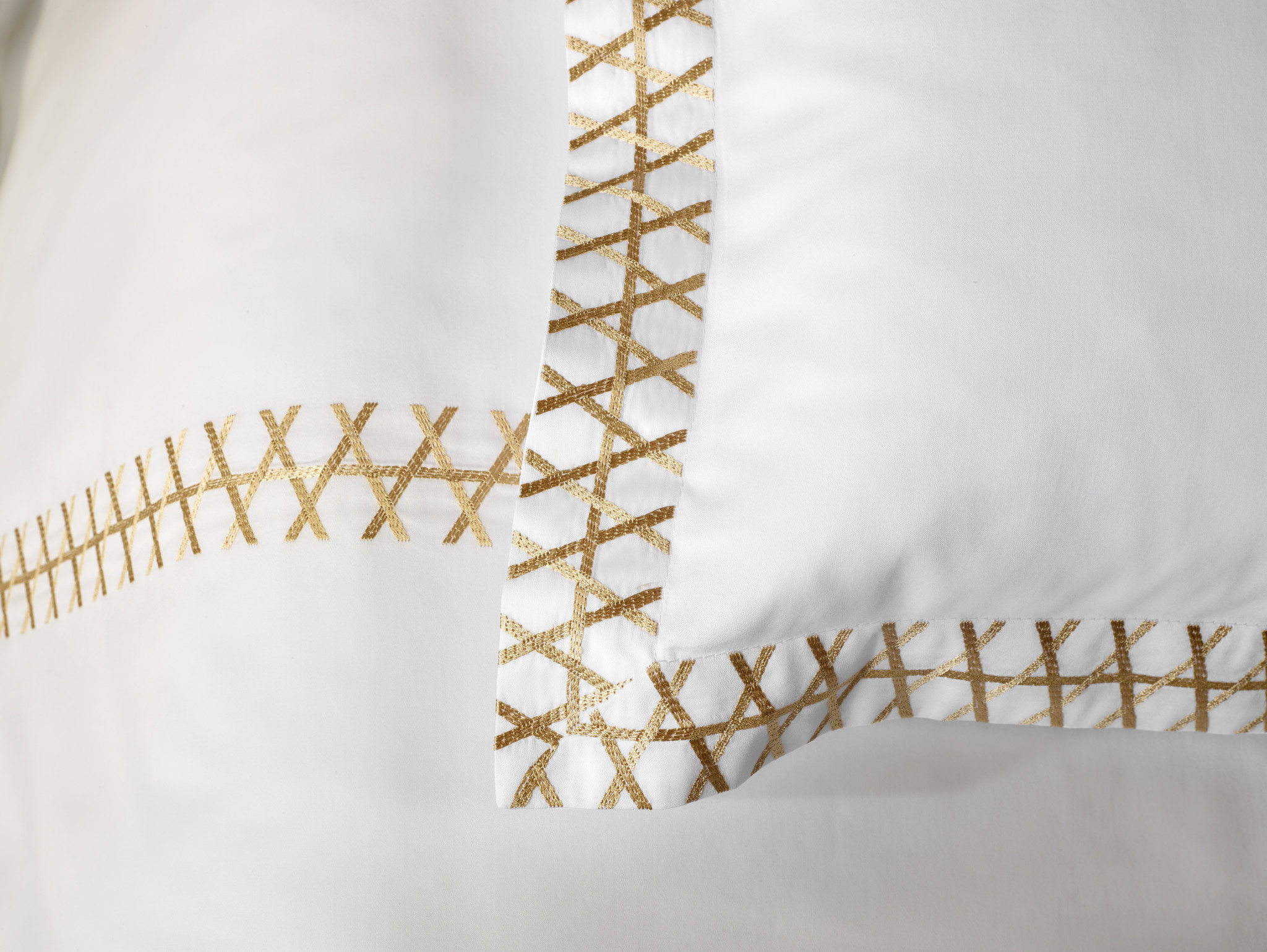 Verweven verbondenheid, daar proef je uit het ontwerp Topali van Mirabel Slabbinck. Gedistingeerd machineborduurwerk rijst op uit het rietgewas en laat zich inspireren op het authentieke webbingpatroon. Een klassieke techniek verbindt zich hier met minutieus vakmanschap waarbij de afwisseling tussen de verwevenheid van de fijne steken en de ruime openingen een harmonieus geheel vormt met een royale look.