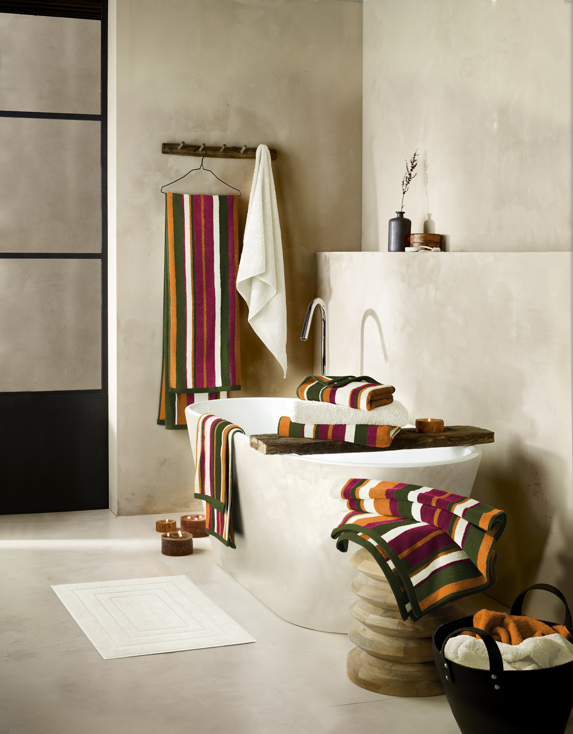 Deze leuke gestreepte handdoeken zijn ook mooi te combineren met de andere badlijnen van De Witte Lietaer.