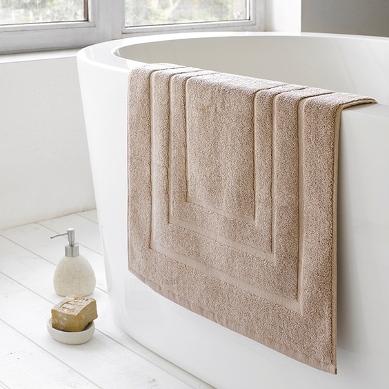 Deze badmat is mooi te combineren bij de handdoeken Stéphanie en Helene humus en is verkrijgbaar in 3 maten. Deze kleur past niet bij de taupe kleurige handdoeken van de Excellence badlijn.