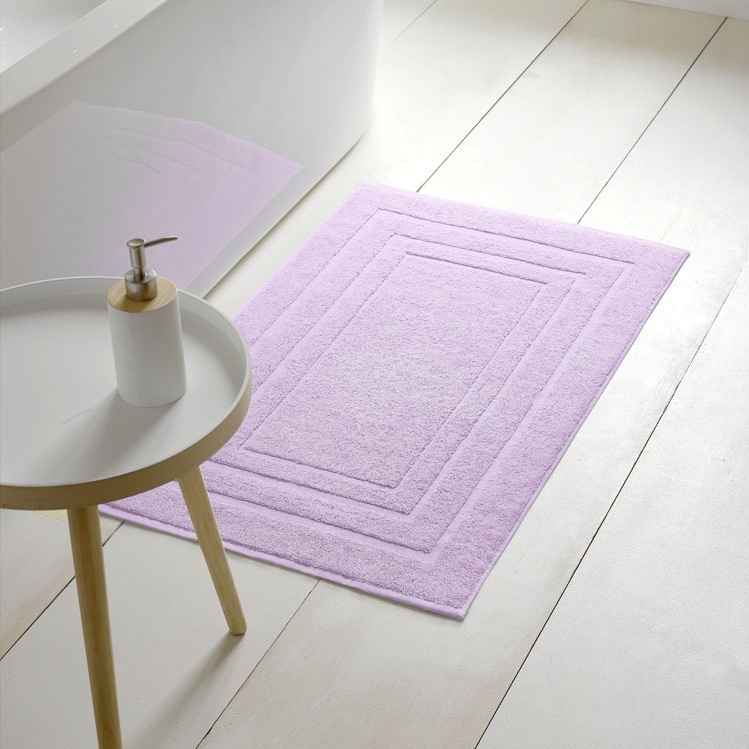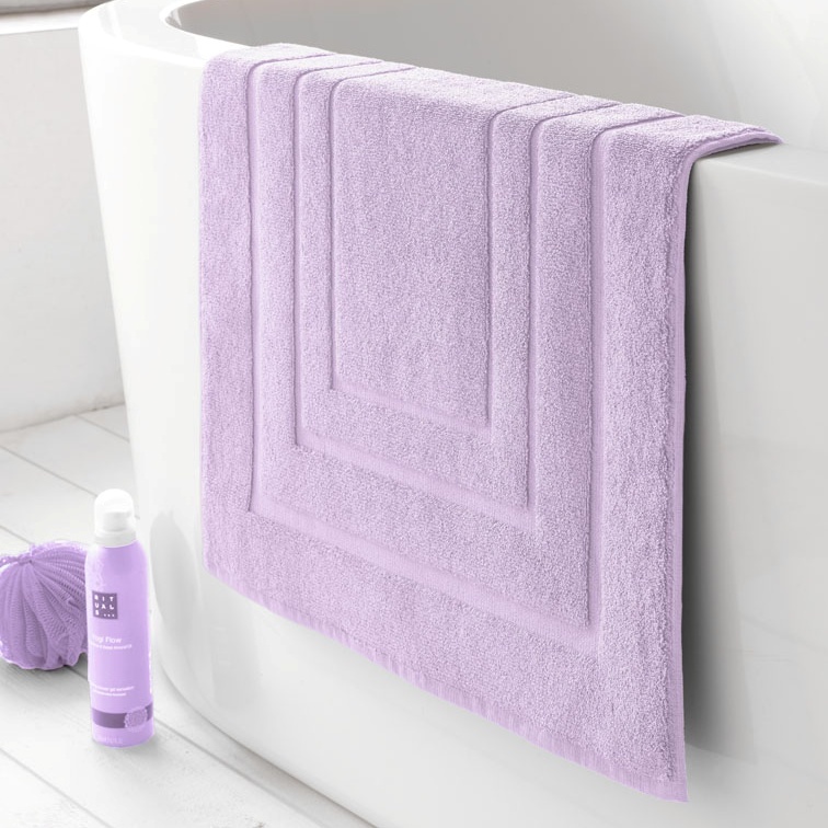 De Pacifique badmat uit de collectie van De Witte Lietaer, in de kleur lila heeft een gewicht van 1000 gram per m² en is gemaakt van 100% katoen.