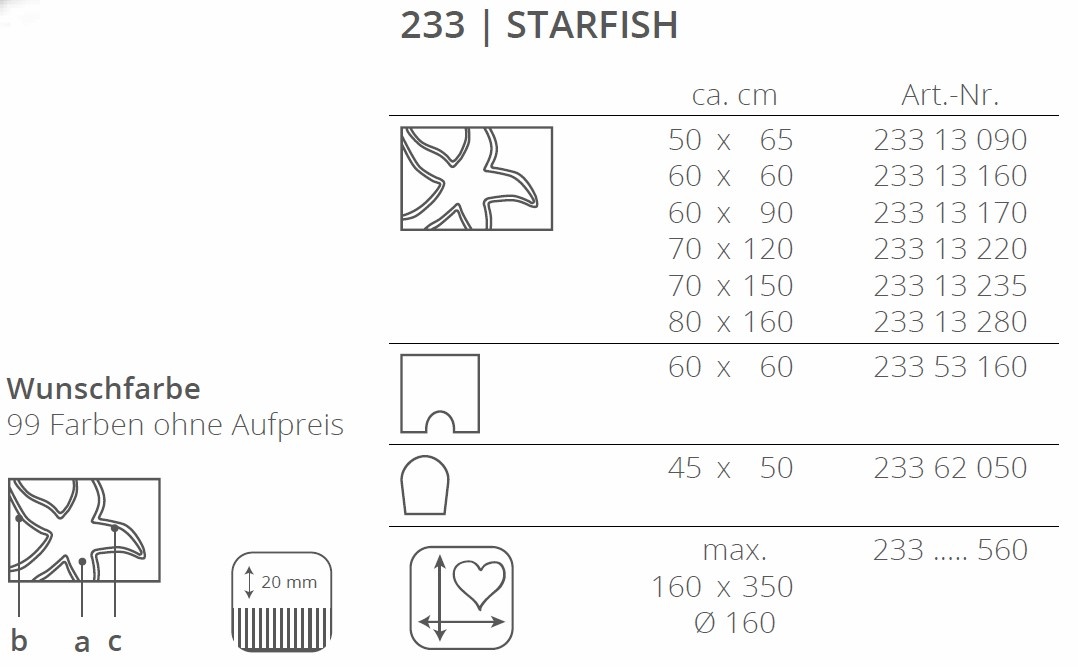 De Rhomtuft Starfish badmat wordt met de hand getuft inmakkelijk te onderhoudenPolyacrylmet eenvloerhoogtevan 20mm. Deze badmatten zijn geschikt voor vloerverwarming.
