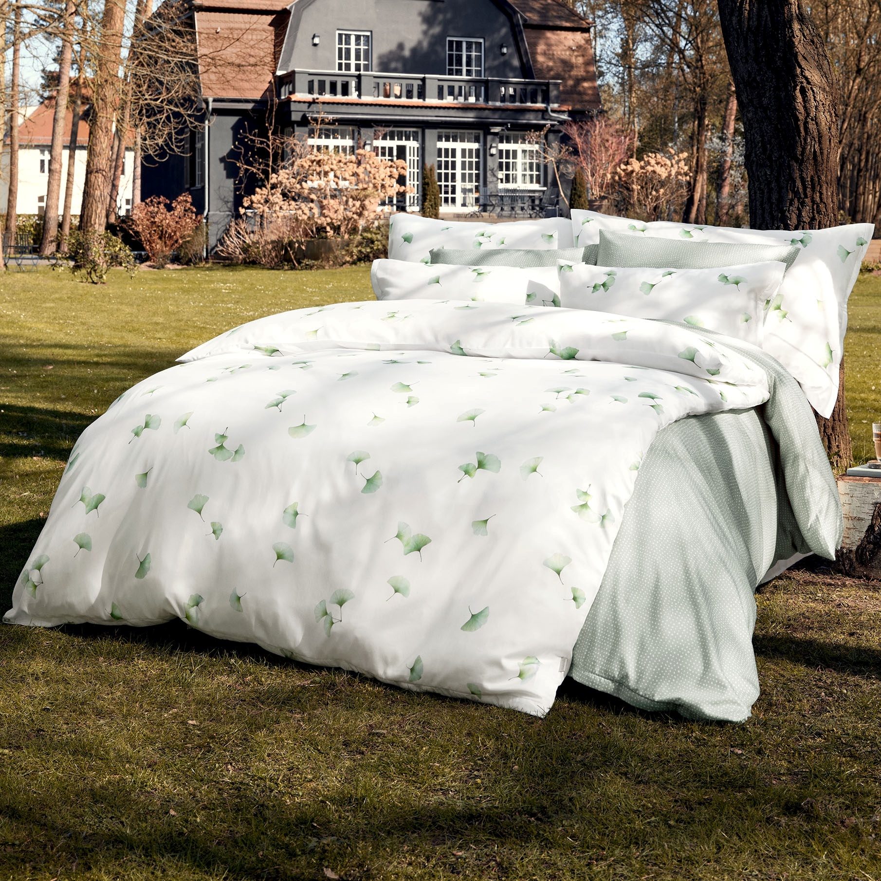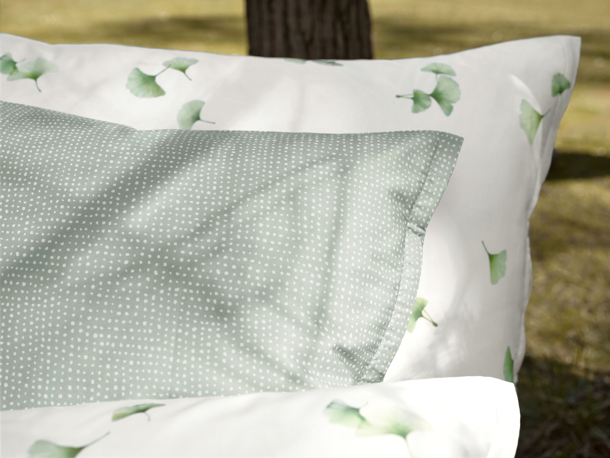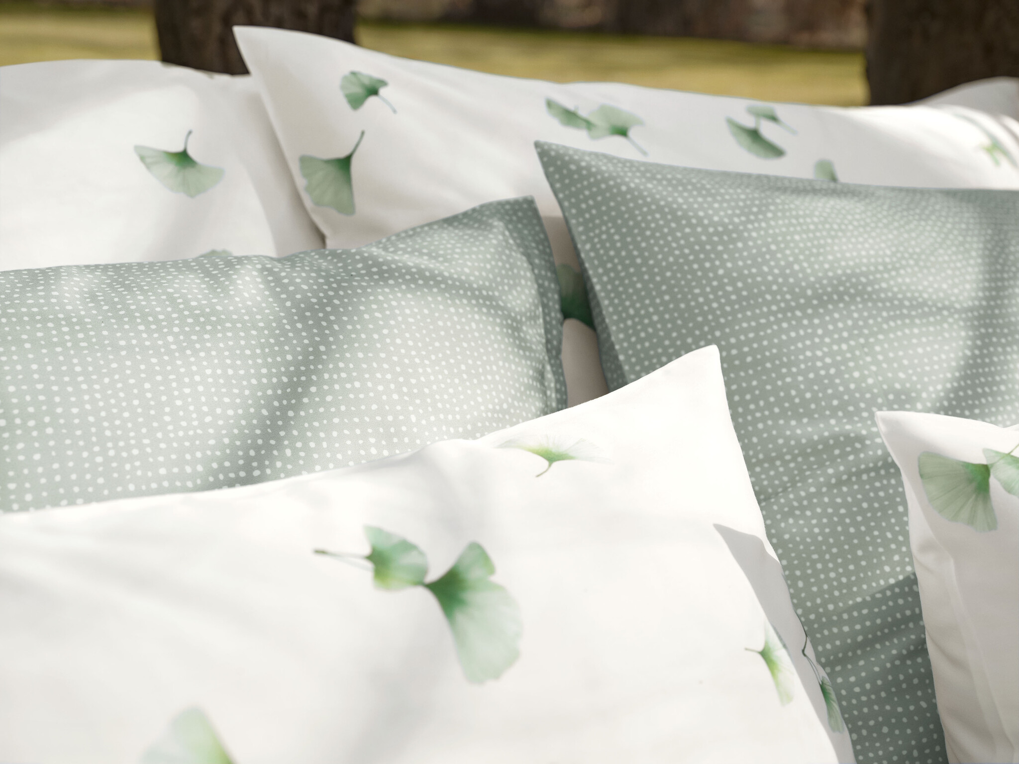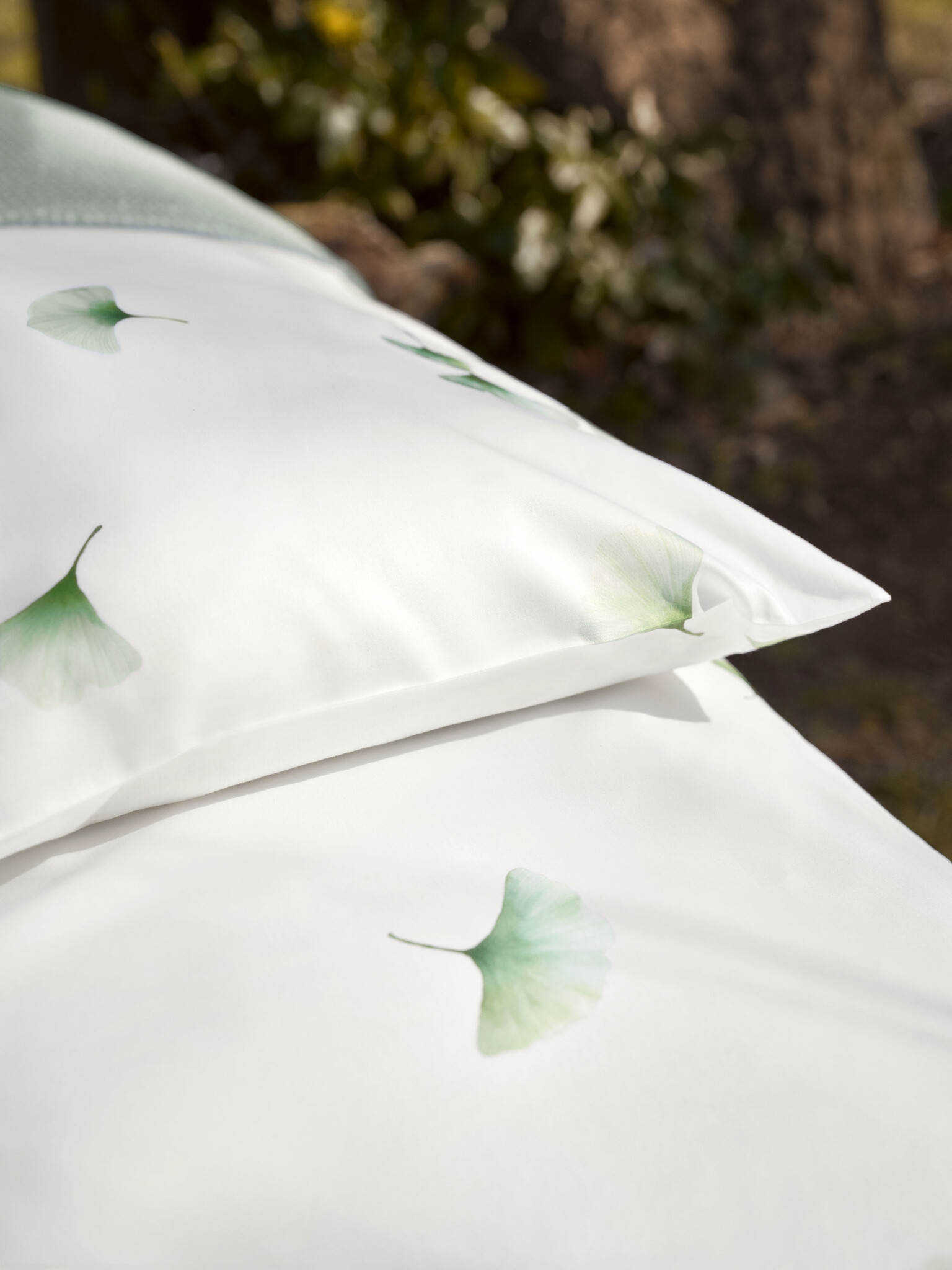 Als u op zoek bent naar de rust van een zentuin, dan bent u hier aan het juiste adres bij de Aiko van Schlossberg. De tere ginkgoblaadjes dansen in de wind als de herfstbladeren buiten, maar de frisgroene kleuren doen ons ook denken aan lentedagen.