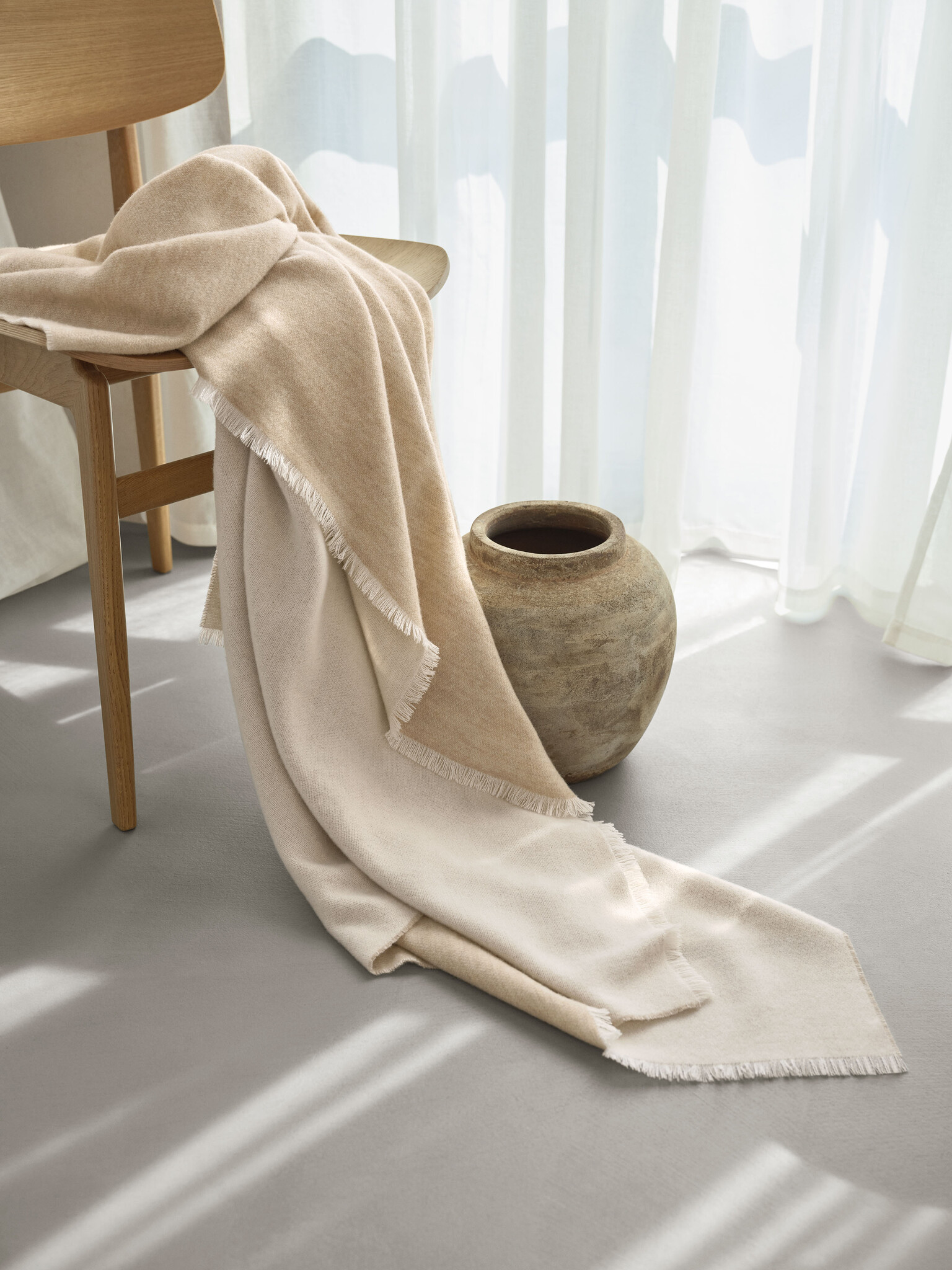 Of je nu geniet van het uitzicht op de natuur of met beide handen een dampende kop thee omarmt, de Dina plaid is jouw ultieme metgezel in de koude maanden. Gemaakt van 90% wol en 10% kasjmier voelt deze plaid luxueus zacht aan en biedt hij een liefdevolle omhelzing van warmte en comfort. In tijdloos beige en fris groen laat deze plaid zich moeiteloos combineren met diverse bedlinnenstijlen en brengt hij een knusse, gezellige sfeer in elke ruimte.