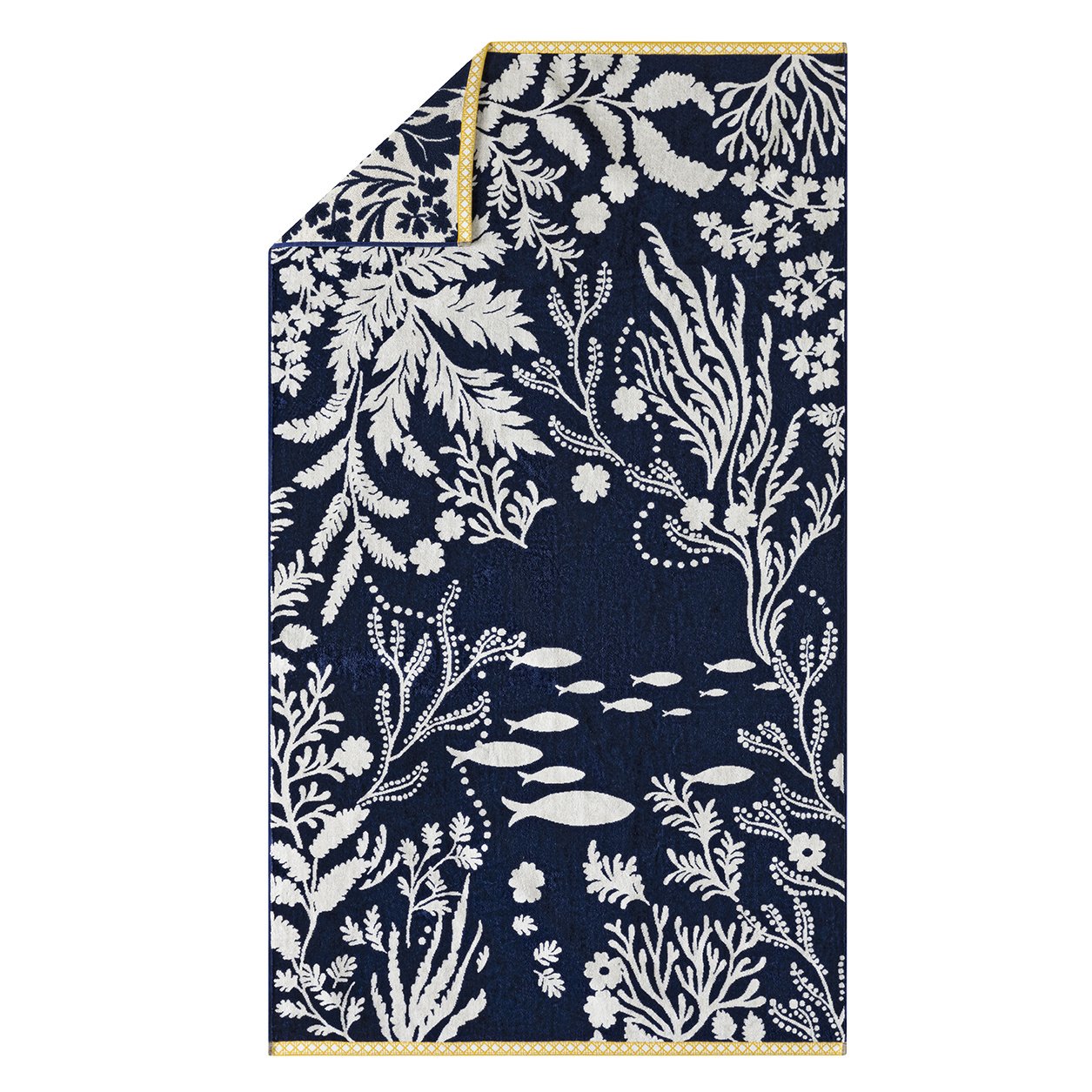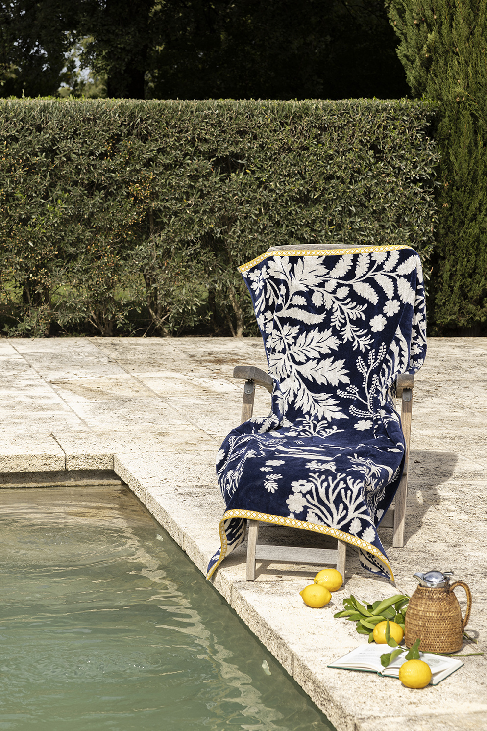 Alexander Turpault strandlaken Calypso marine; jacquard fluweel van biologisch katoen met GOTS-label, gemaakt in Portugal