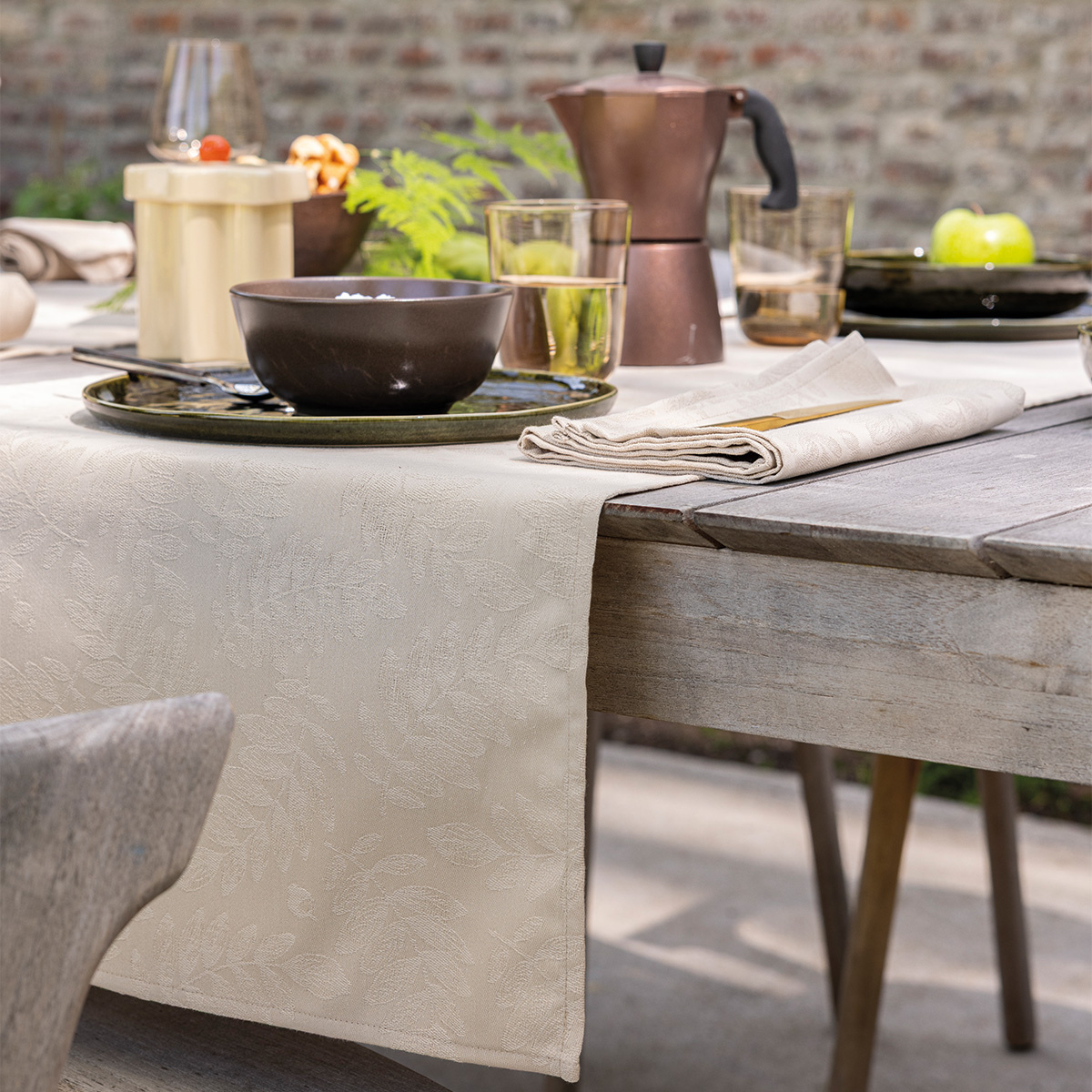 Le Jacquard Français tafellinnen Vegetal Mood beige; natuurlijke elegantie in 100% katoen