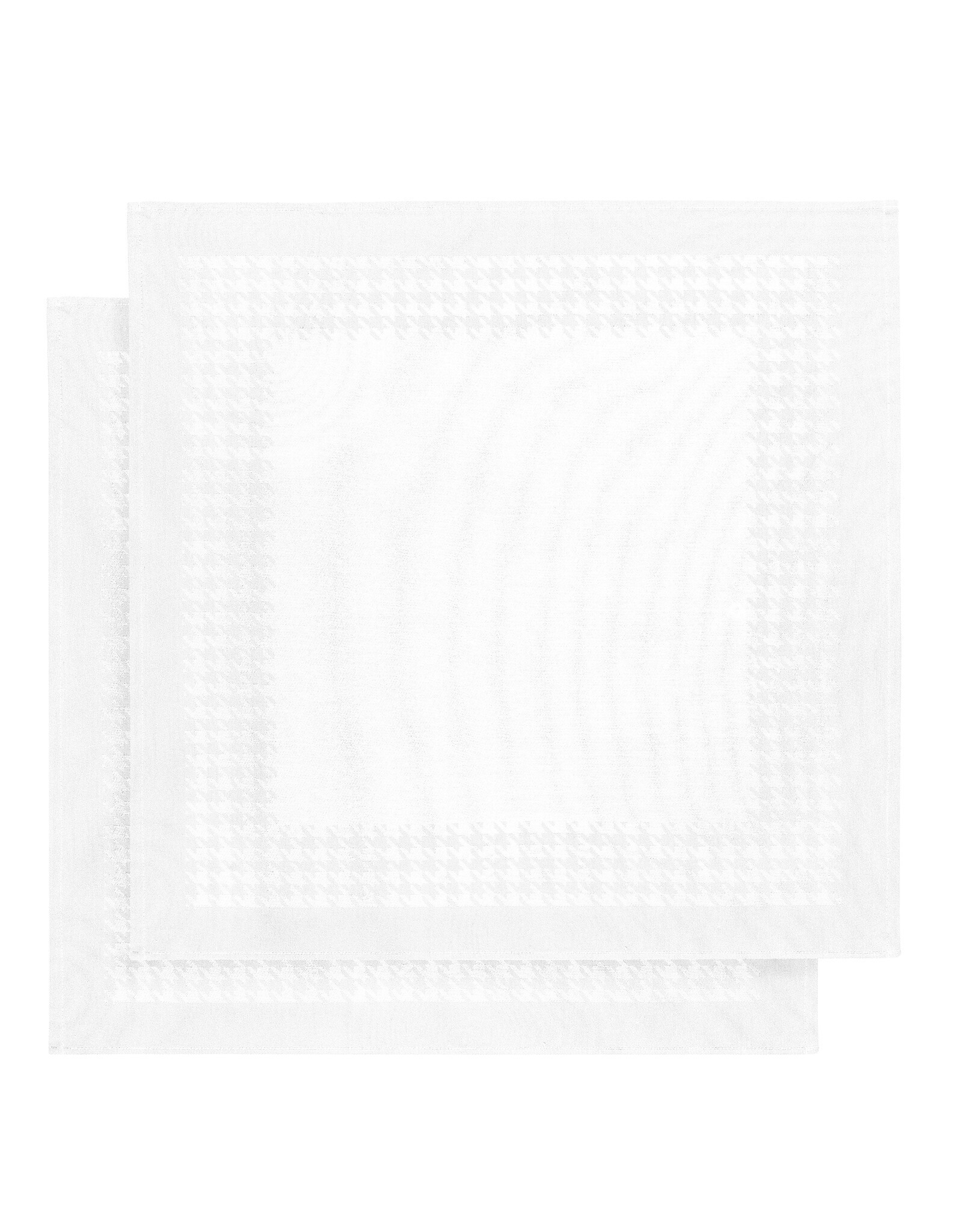 Deze 100% katoenen witte theedoeken (ook wel droogdoeken genoemd) in de royale maat van 65x65 cm zijn zeer fijntjes geweven in een trendy Pied de Poule dessin.Prachtig te combineren met de bijpassende effen keukenhanddoek wit.